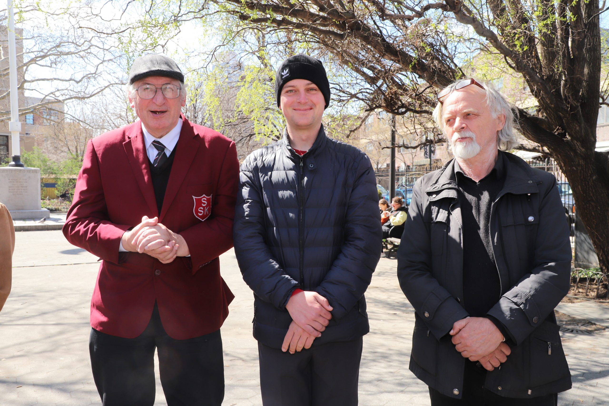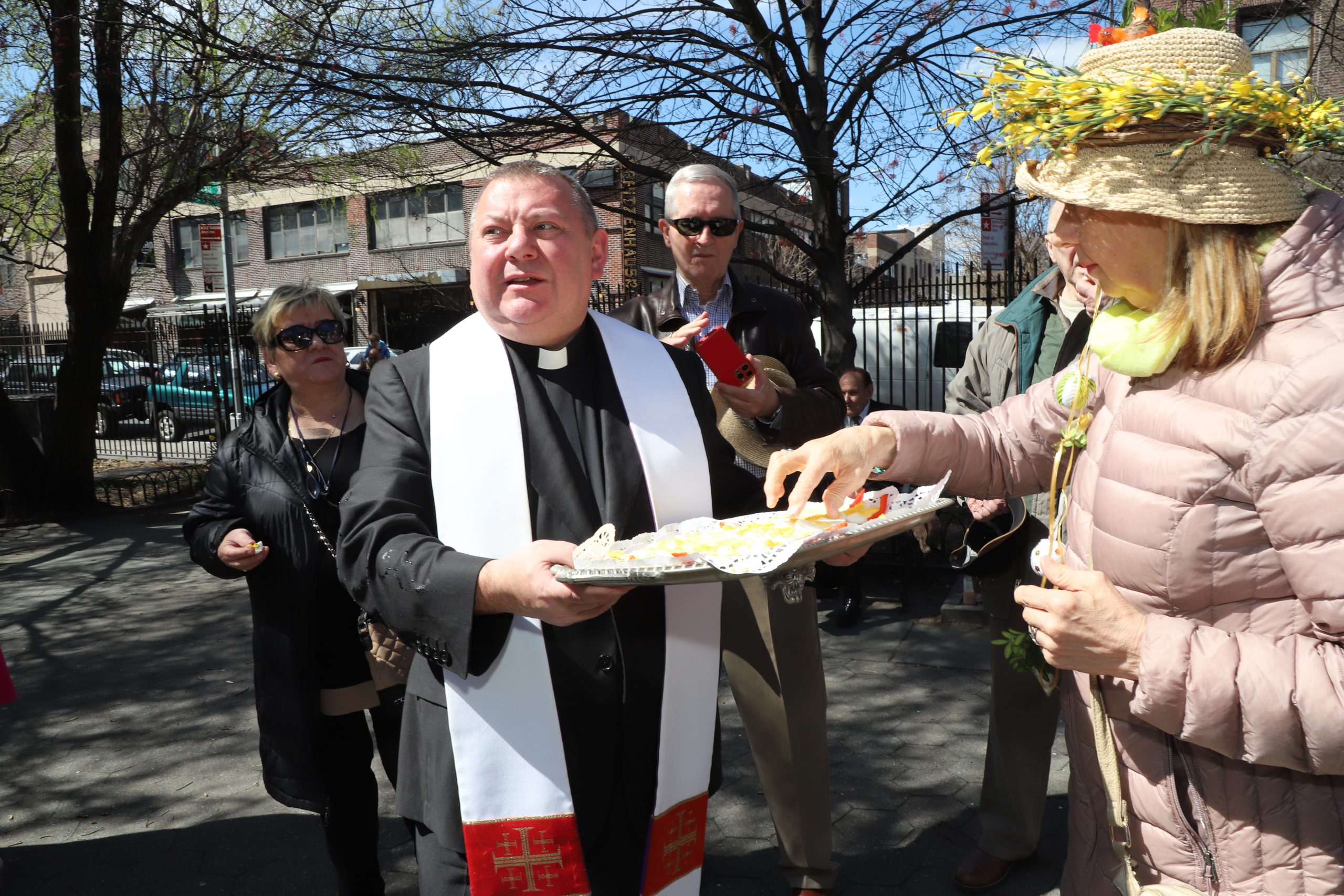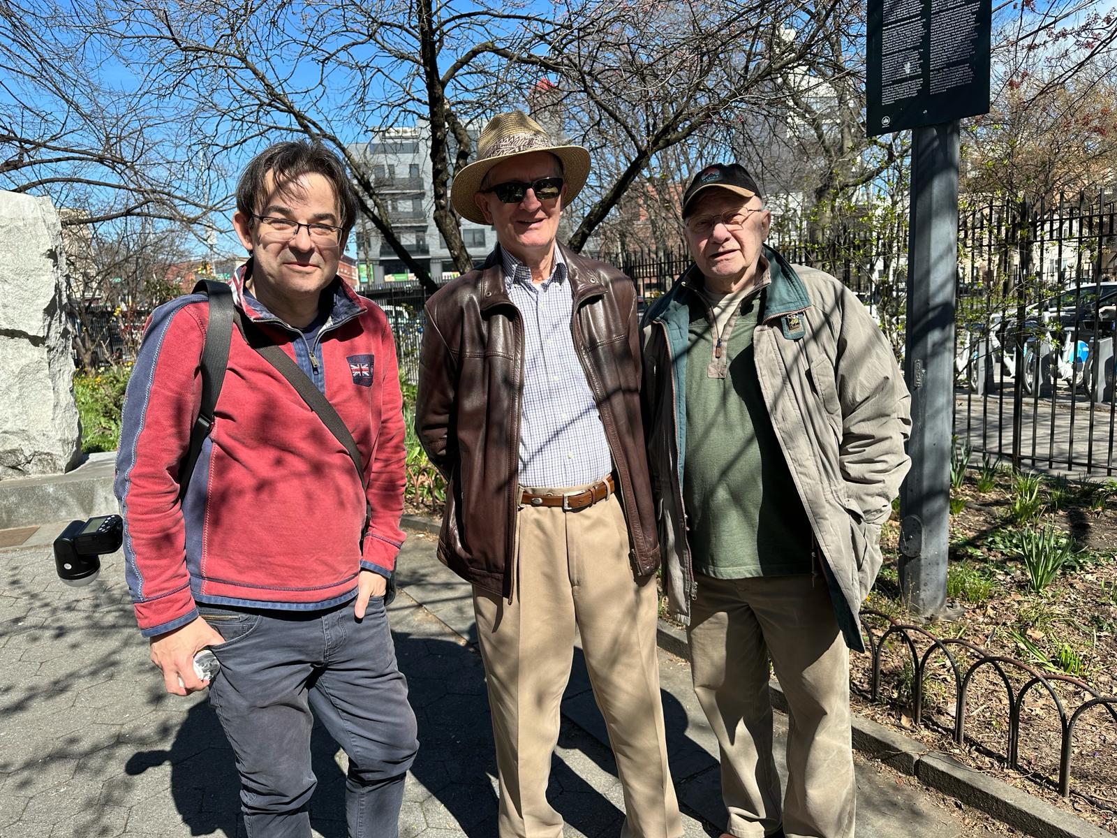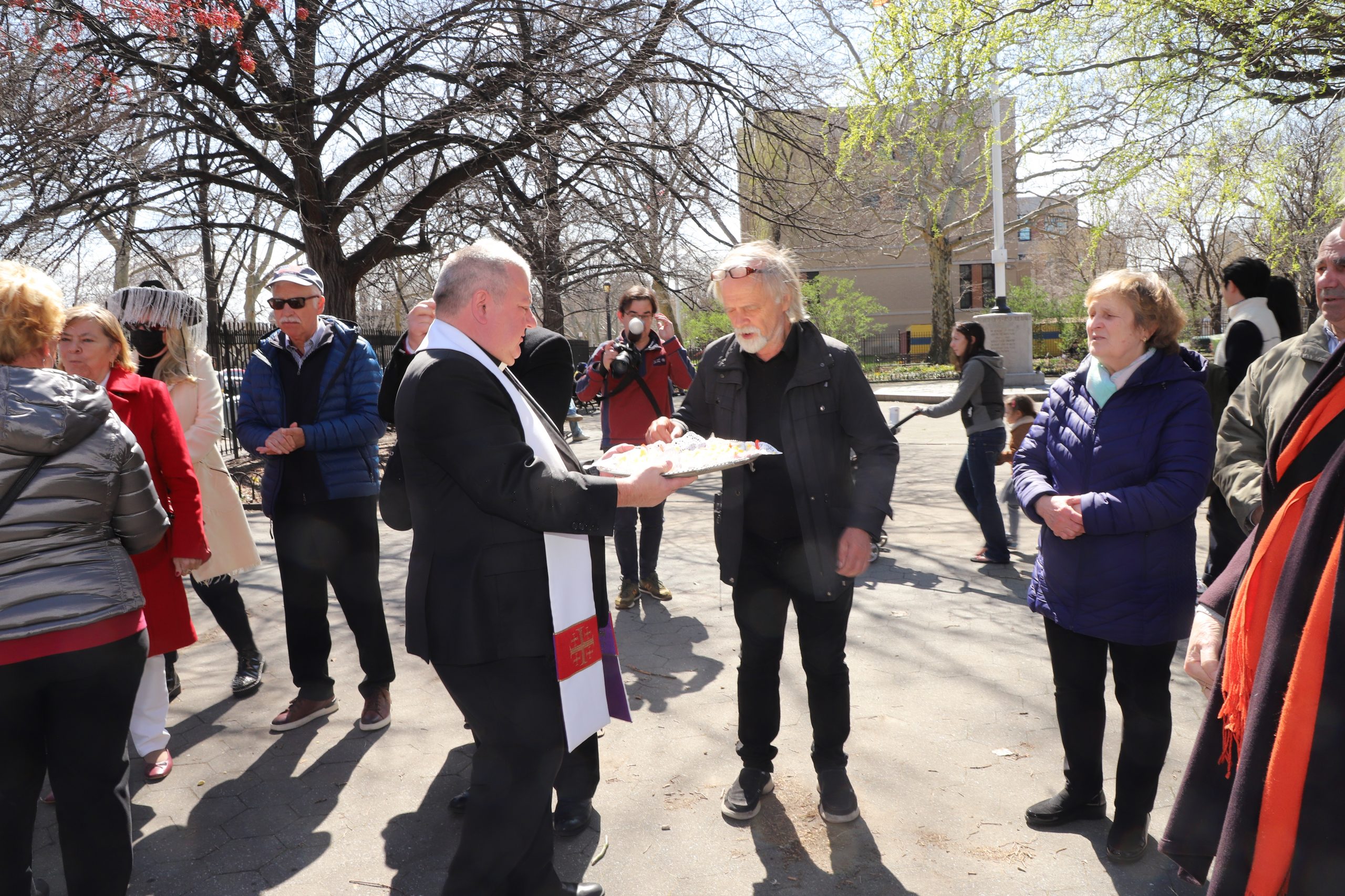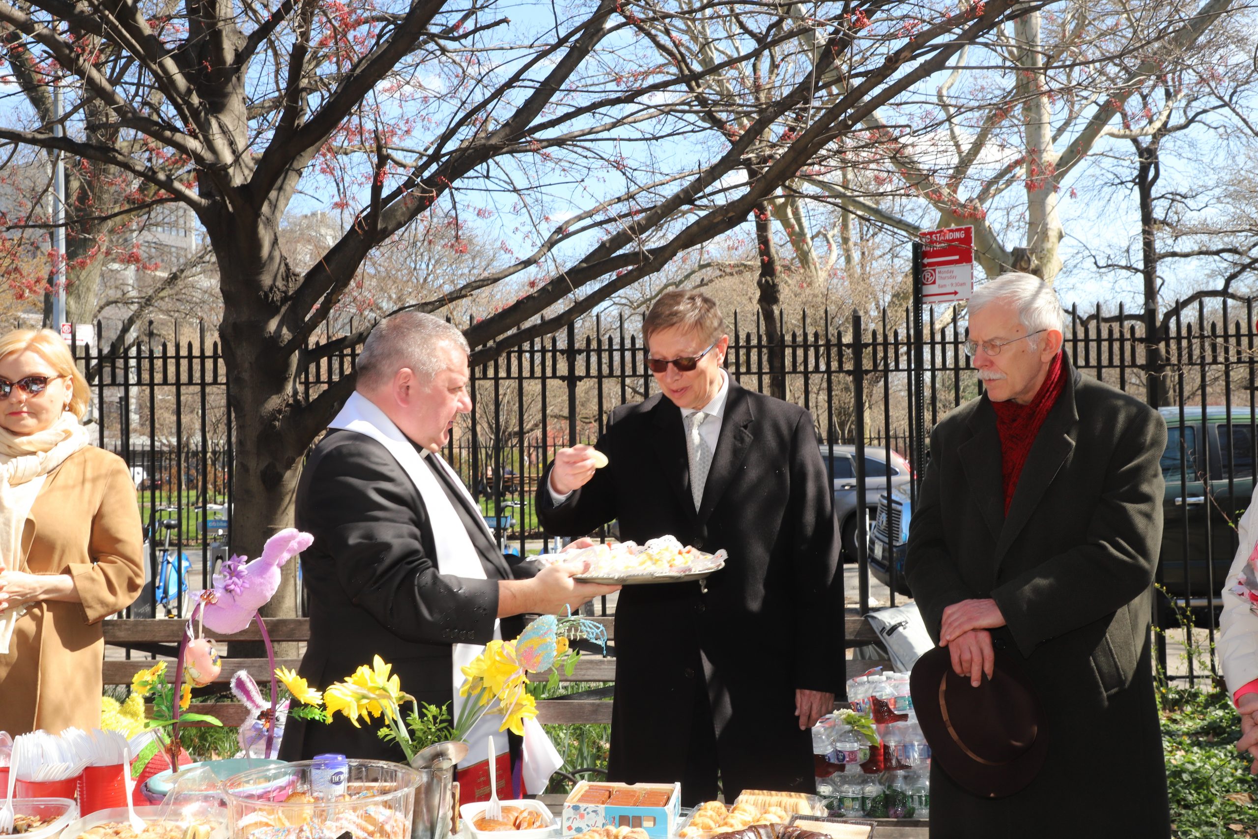On the initiative of the seniors of the Krakus Club operating in the Polish Slavic Center, on Easter Sunday, March 31, the third meeting took place at the monument of Father Jerzy Popiełuszko in Greenpoint. Members of the Northside Senior Center from Williamsburg, friends and passers-by also attended. We were honored with the presence of: the president of the Polish Slavic Center, Marian Żak with his wife Małgorzata, the new president of the Polish-American Photography Club, Dariusz Kanarek, who came with his father, Krzysztof Kanarek, a former singer from Masovia and soloist of the Warsaw Operetta. Invited priest Grzegorz Markulak, parish priest of St. Stanisław Kostka in Greenpoint said: “After the end of the 40 days of Lent, we gather for the Feast of the Resurrection of the Lord. There is great joy in our hearts because Christ lives and is among us. Together with him, we are here in this community at the Easter table to share love, wish each other, and share the blessed egg, a sign of new life. Let us ask Christ, always present among those who love Him, to bless the food on our Easter table. After reciting the Litany of thanksgiving and prayers, he blessed the Easter food and those gathered.