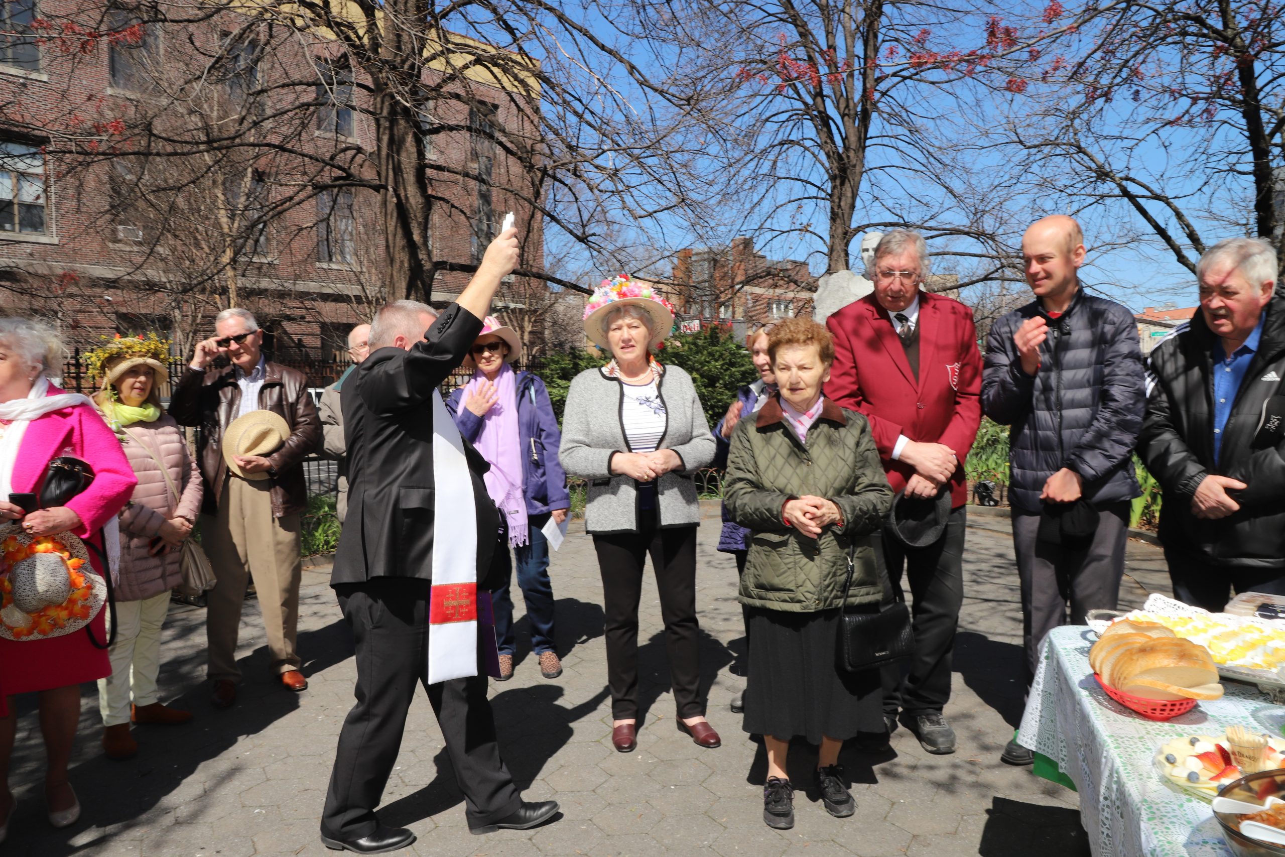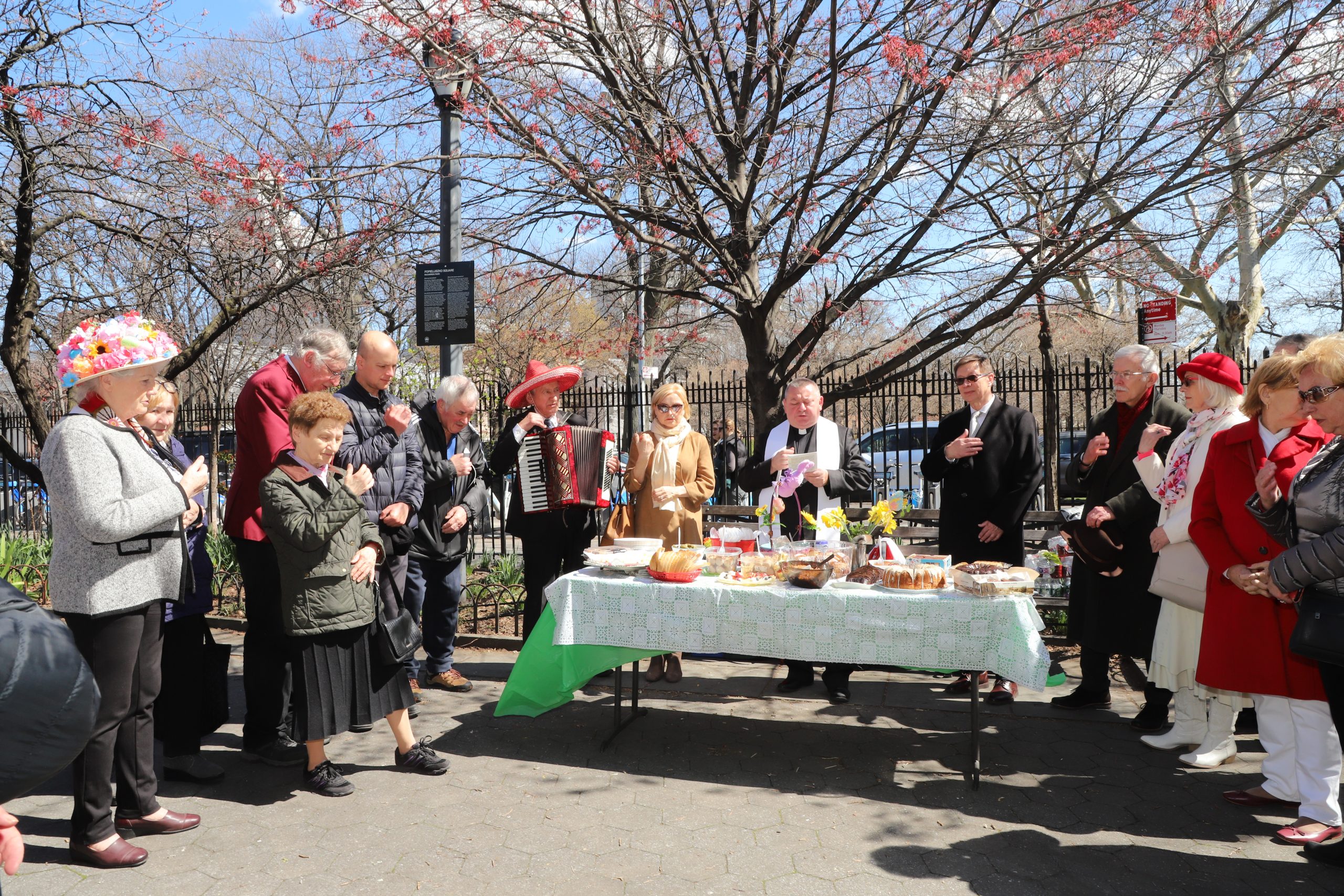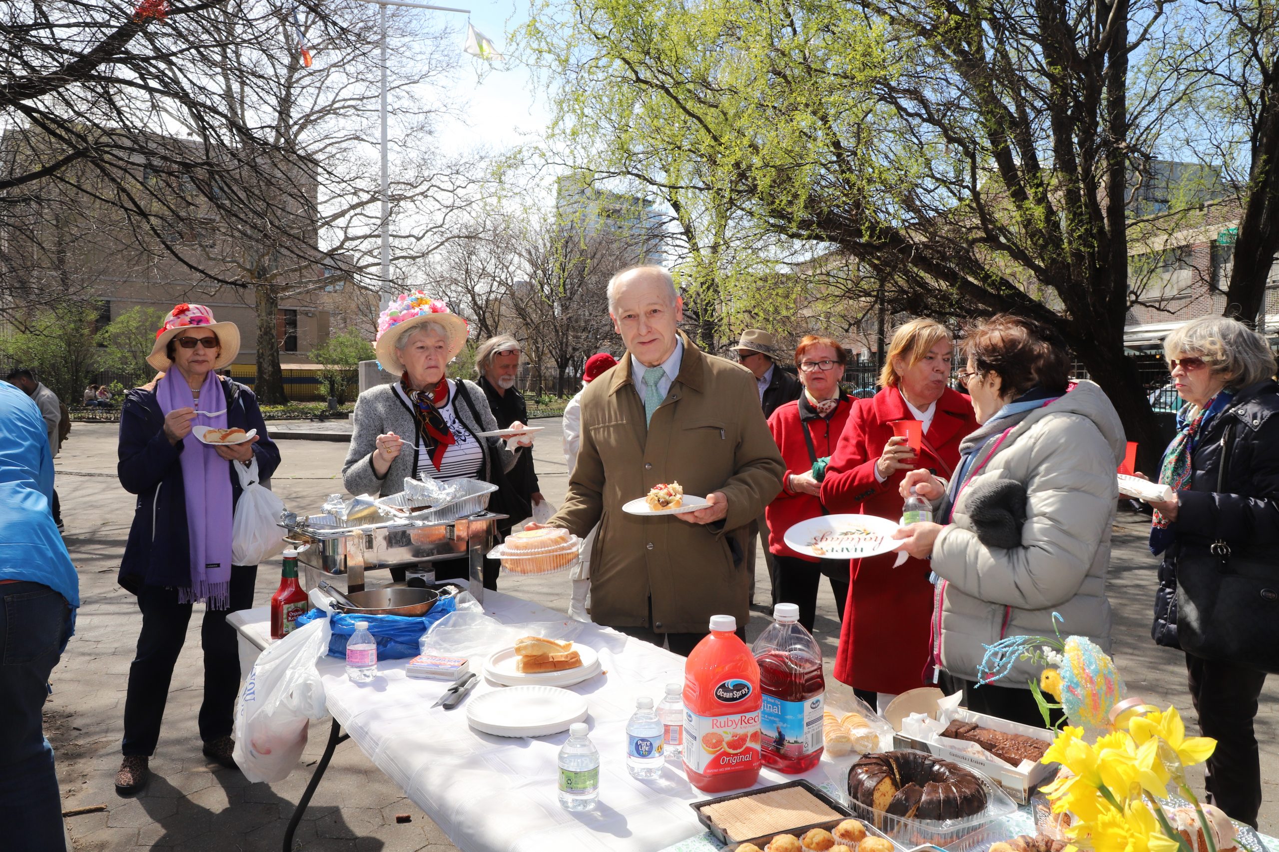 Judging by the opinions of those present, the idea of an Easter lunch at the monument of Father J. Popiełuszko in Greenpoint was very positively assessed and a proposal was made to continue it. The artistic setting of the picnic was the fancy, colorful headgear of many ladies and men. The weather was good for us and so was the turnout.