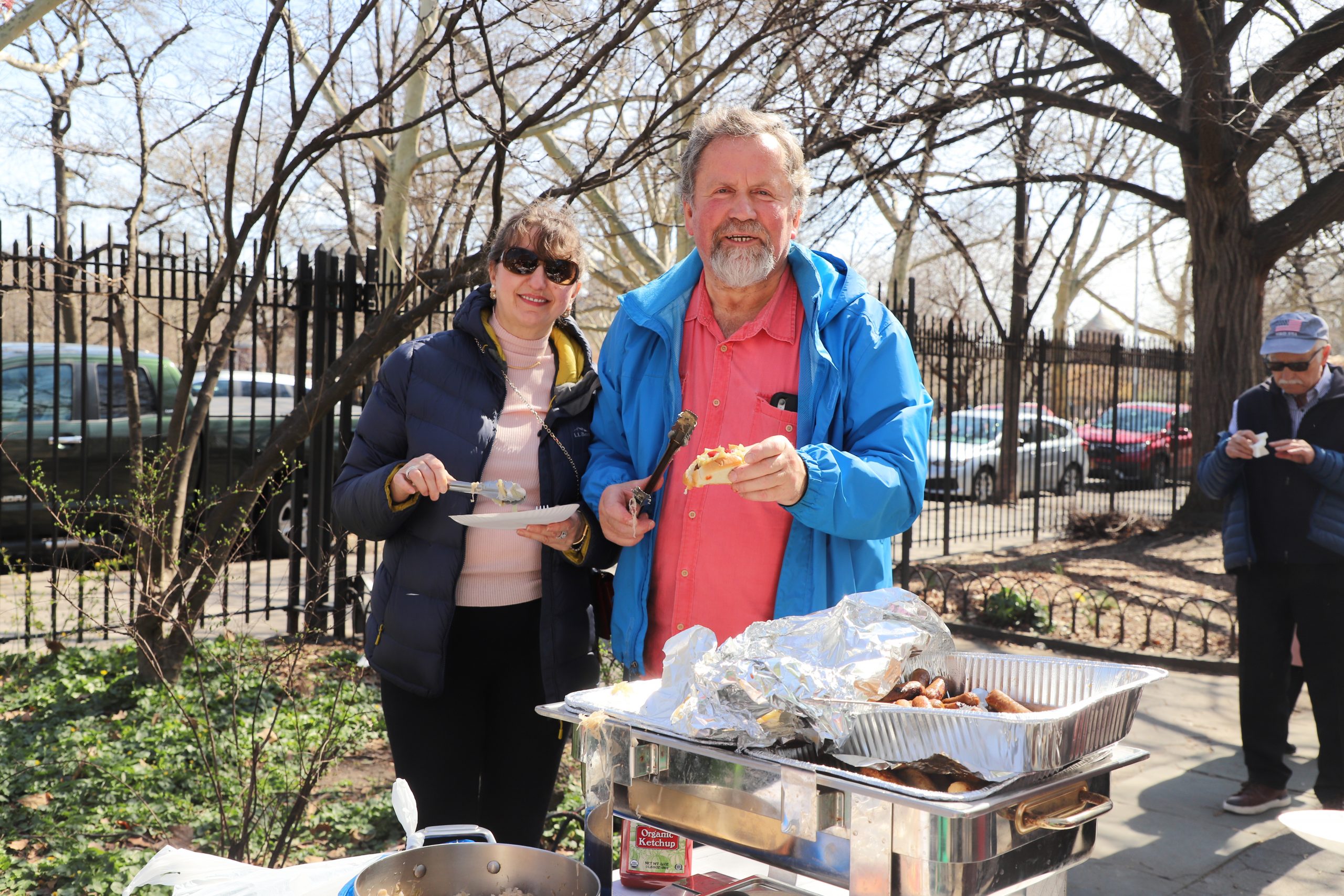 The culinary attraction was German sausage and hot dogs with stewed onion, sauerkraut and organic ketchup served by Zbigniew Dudek and his wife. Stefan Orzech, an accordionist famous among the Polish community, played and sang beautifully. He started with the song “Winner of Death, Hell and Satan” intoned by Father Markulak, and then he played and we sang: “Barka”, “Black Madonna”, “Does Not Know Death”, “Polish Flowers”, “Falcons”, “Szła dzieweczka” ” and other. Krzysztof Kanarek – tenor, sang fragments of the songs “Let’s go back like za za former years”, “A ja ja ja”, “Furmana” from Mazovia and “What’s going on, I’m going crazy” from the Warsaw operetta, accompanied by choir singers from “Krakus” present at the lunch.