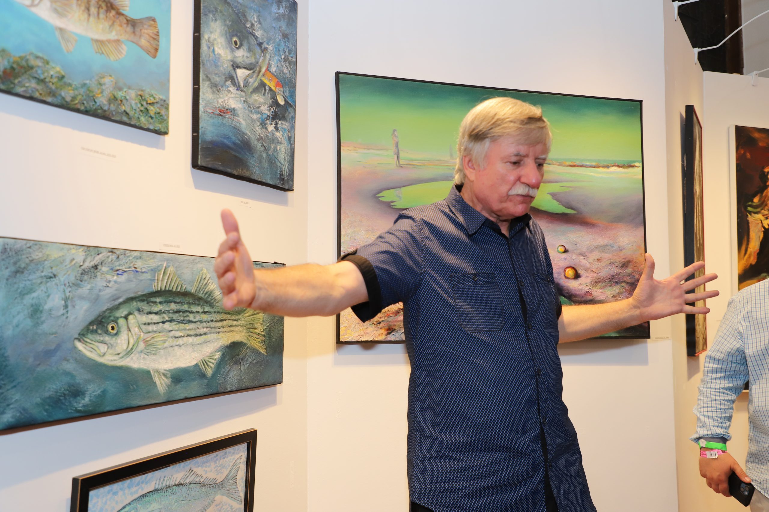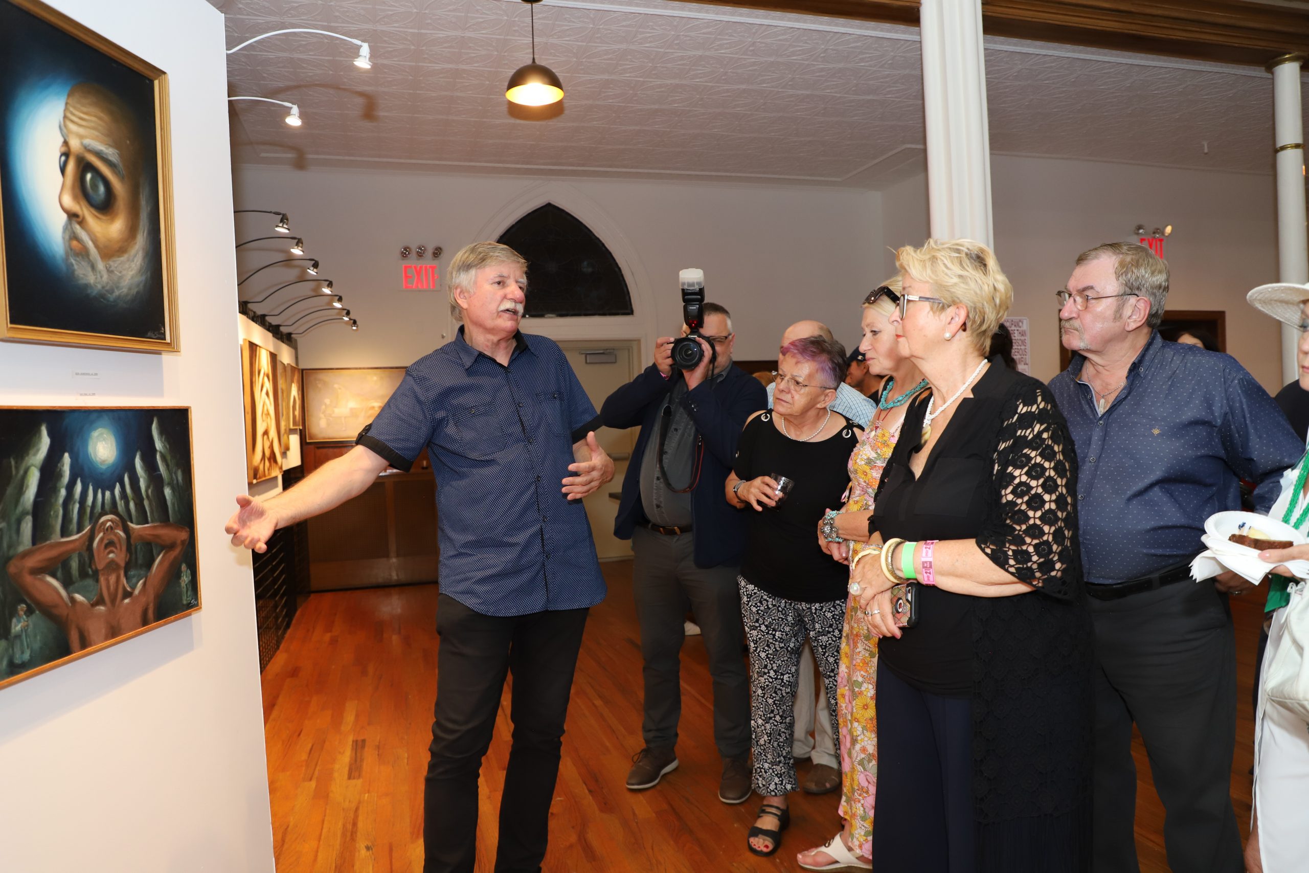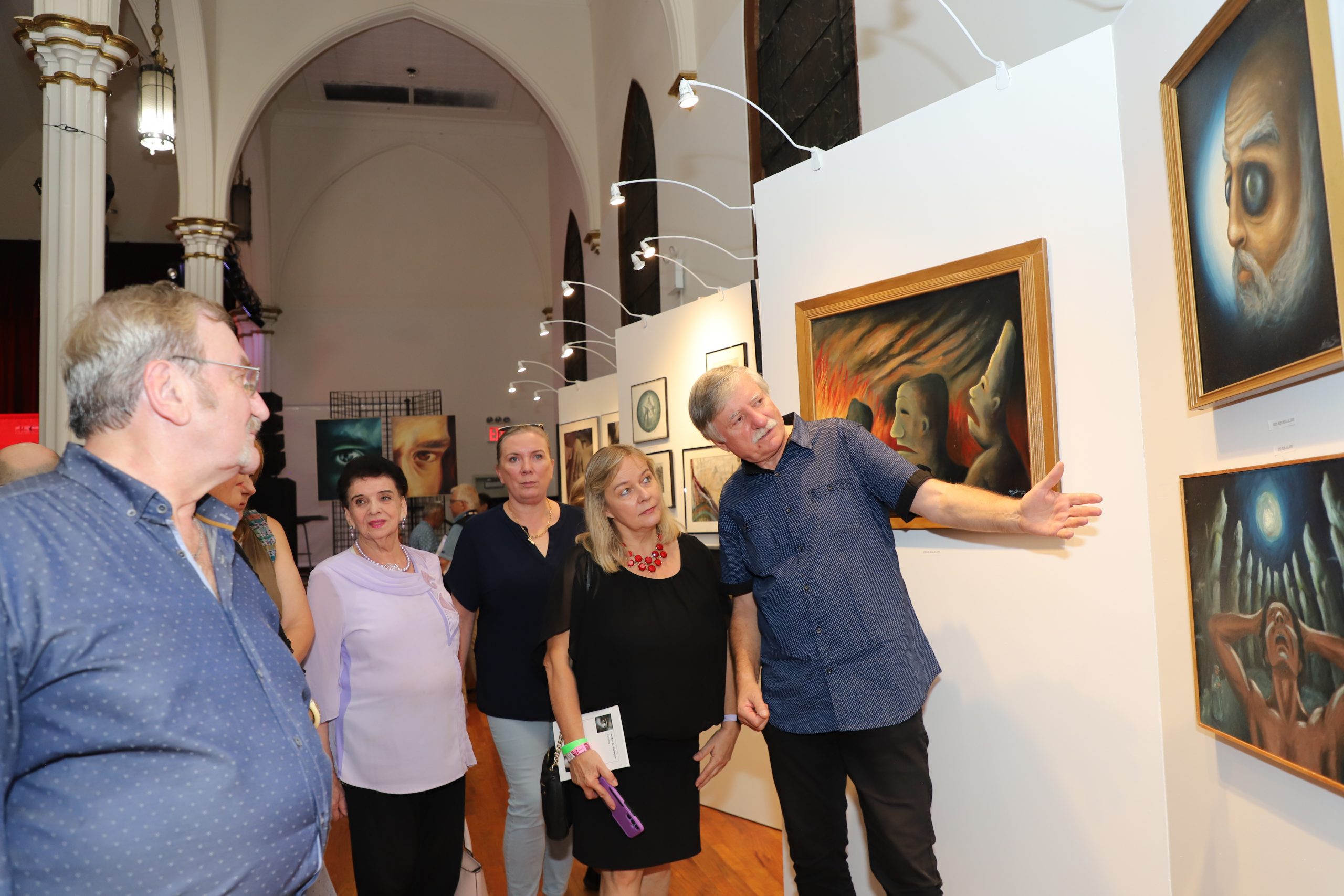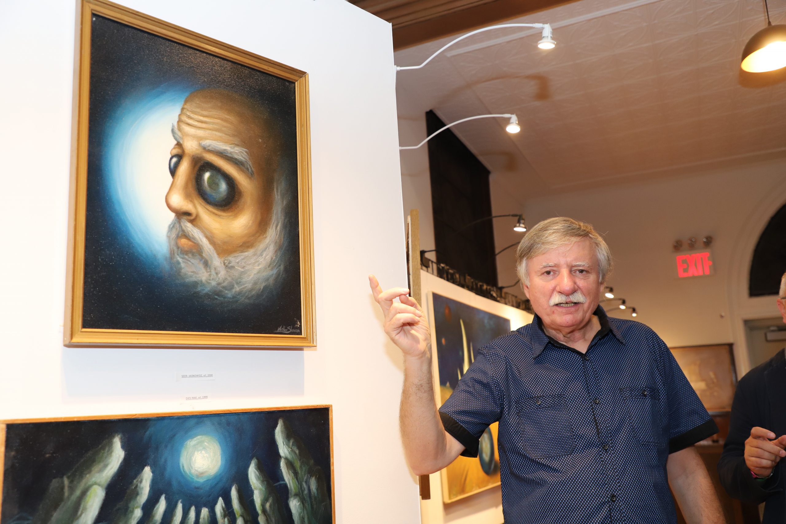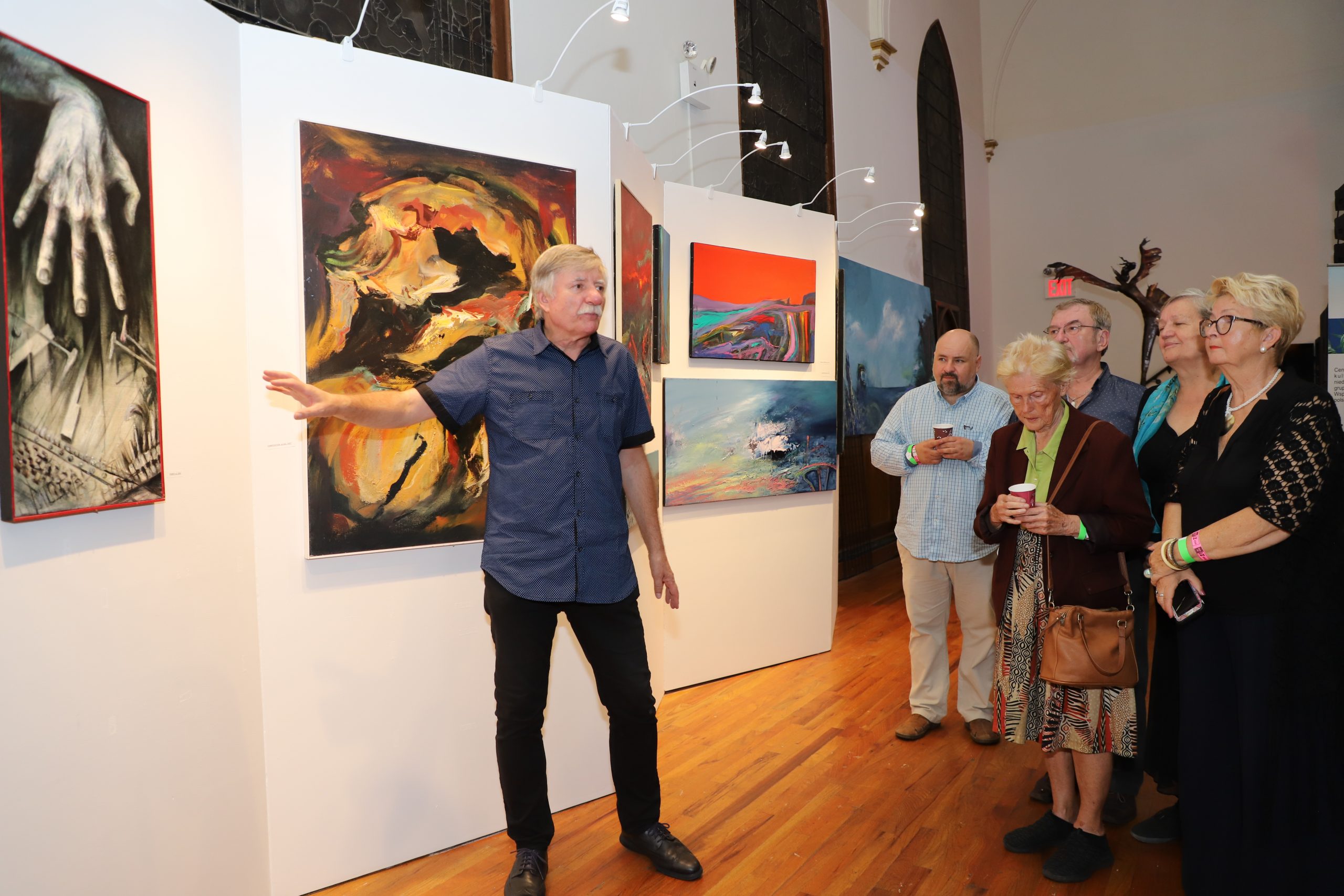 “His artistic work consists of the works that can be admired at this exhibition. They were made in various techniques – from classic painting, to drawing, to photography. However, in Artur’s work we can easily find a multitude of trends and inspirations that found individual interpretations in his works. Realistic elements coexist with those bordering on surrealism and abstraction. His works are characterized by strong expression. There is no place for monothematicity in Artur’s work. It is replaced by a multitude of threads and issues, which expresses great curiosity and hunger for the world.” Artur presented his works at over forty individual exhibitions and over one hundred and sixty collective exhibitions, including: in the United States, Poland, Germany, France, South Korea and China. He has won several artistic awards and distinctions. The curator of this exhibition is Janusz Skowron, Artur’s father, a well-known Polish artist and art animator, and he showed the audience around his son’s exhibition, talking very interestingly about the genesis of individual works. A surprise at the opening was the screening of an interesting documentary about Artur, where we could also admire him as a good musician.