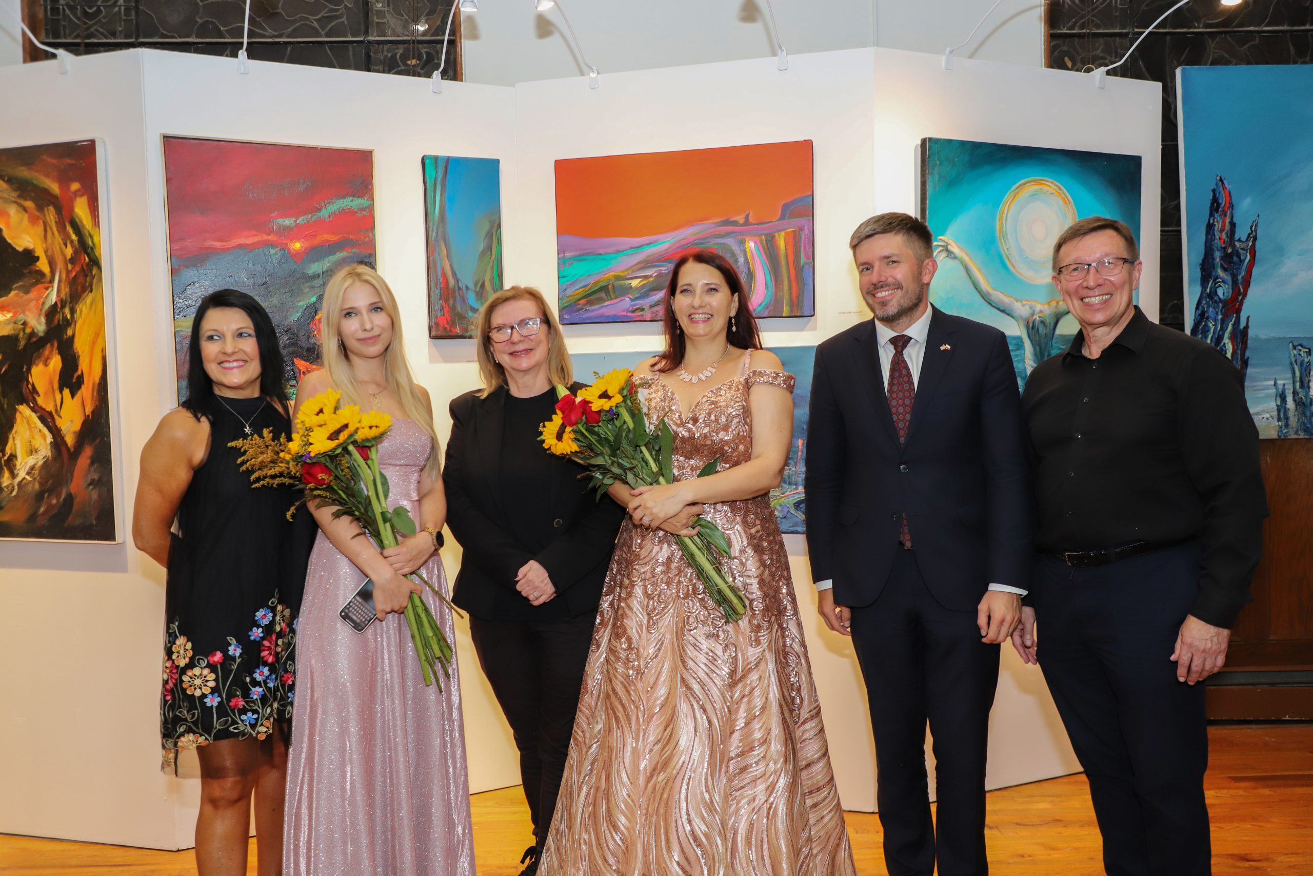 During the opening, a special guest performed – an artist from Poland, Anna Maria Adamiak, an opera, operetta and musical singer. She began the concert beautifully by singing the opera aria “Lascia ch’io pianga” (“Rinaldo”, Handel), followed by “Which lips kisses” (“Giuditta” Lehar), “When the violinists play” (“Gypsy Love” Lehar), Songs from West Side Story and Polity, and retro songs from rep. among others Hanka Ordonówna, M.Fogg, Z.Pogorzelska and Irena Santor “You will return here”. She showed how diverse her repertoire is and how good she feels in it. Another surprise was the performance of her beautiful and also vocally talented daughter, Maja, who sang in a duet with his mother “The Twenties, the Thirties” and the solo “Who so nicely steals” from the movie “Hello, Szpicbródka”. This artistic evening gathered many art lovers and distinguished guests. Also in attendance was Deputy Speaker of the Sejm, Małgorzata Gosiewska and Consul General of the Republic of Poland Adrian Kubicki, who took honorary patronage over the exhibition.