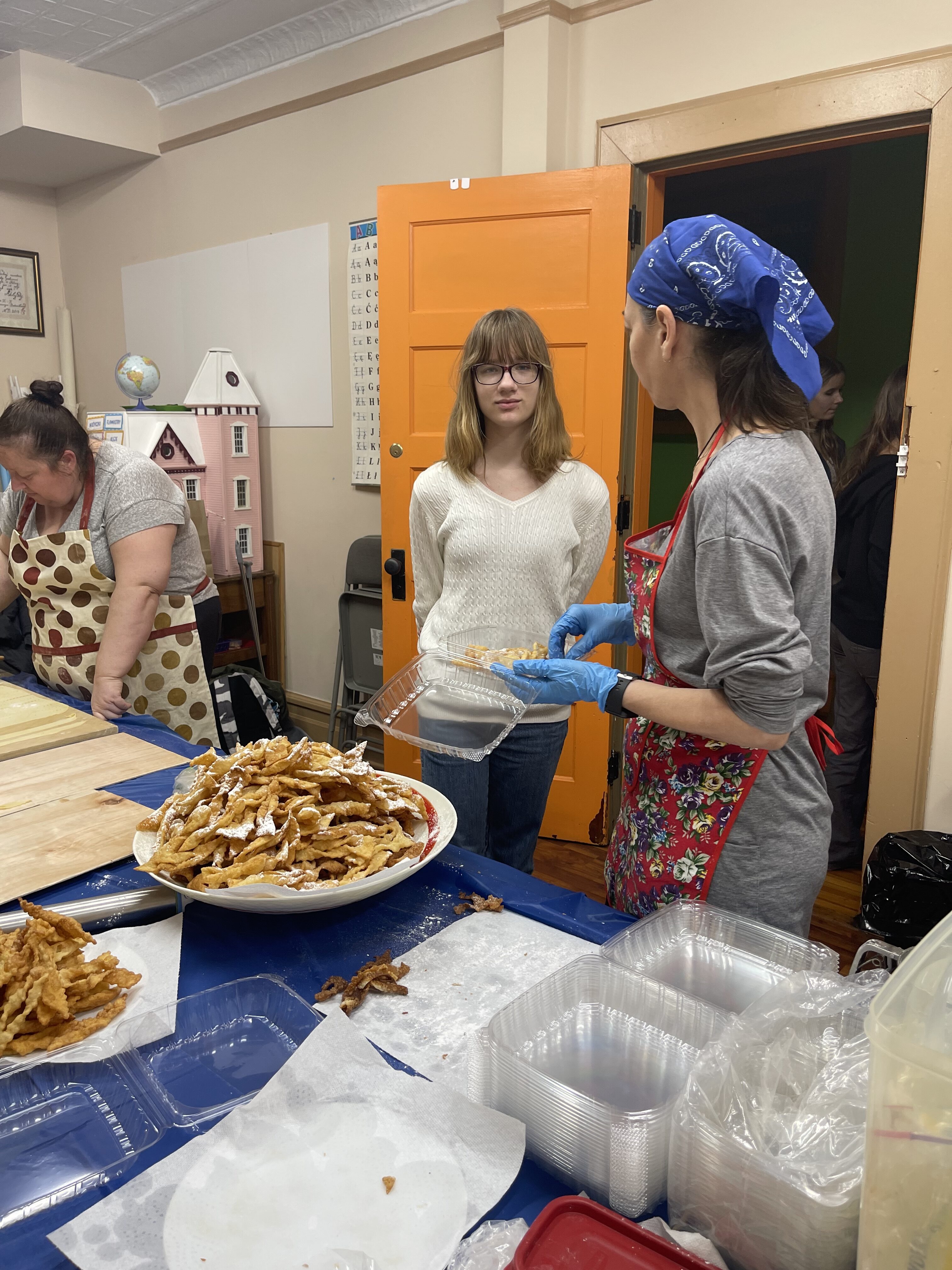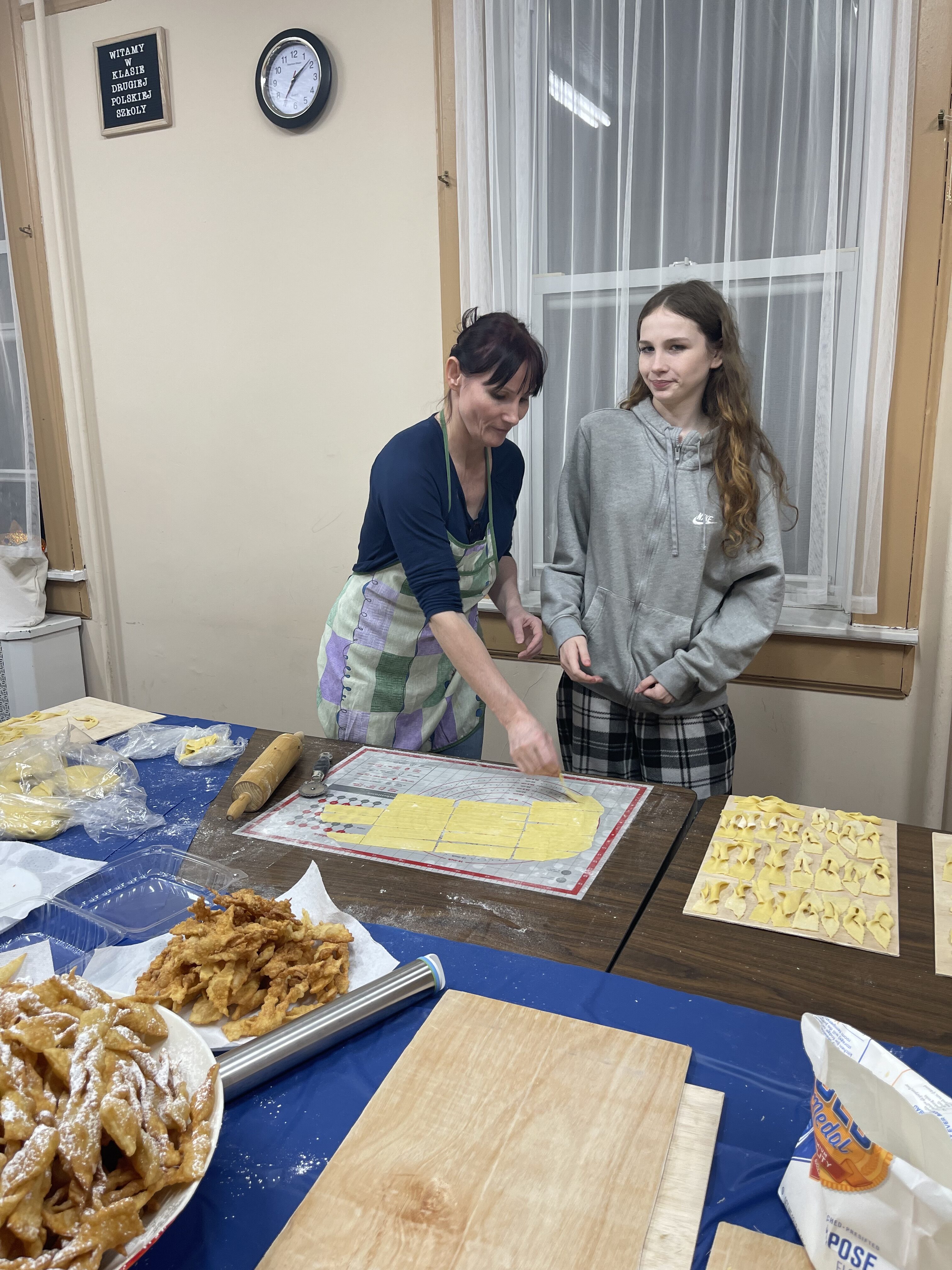 This year, on the Friday after Fat Thursday, instead of frying donuts, high school students and their mothers stood at unconventional silicone and traditional beech wood pastry boards to learn how to make faworki or, if you prefer, Chruściki.