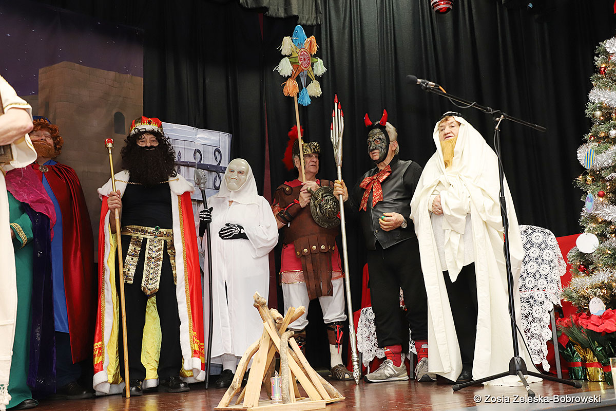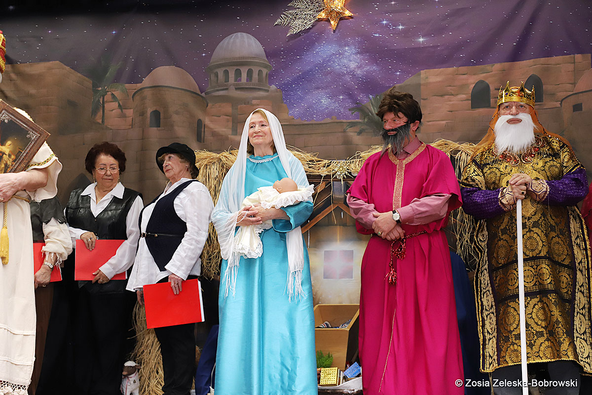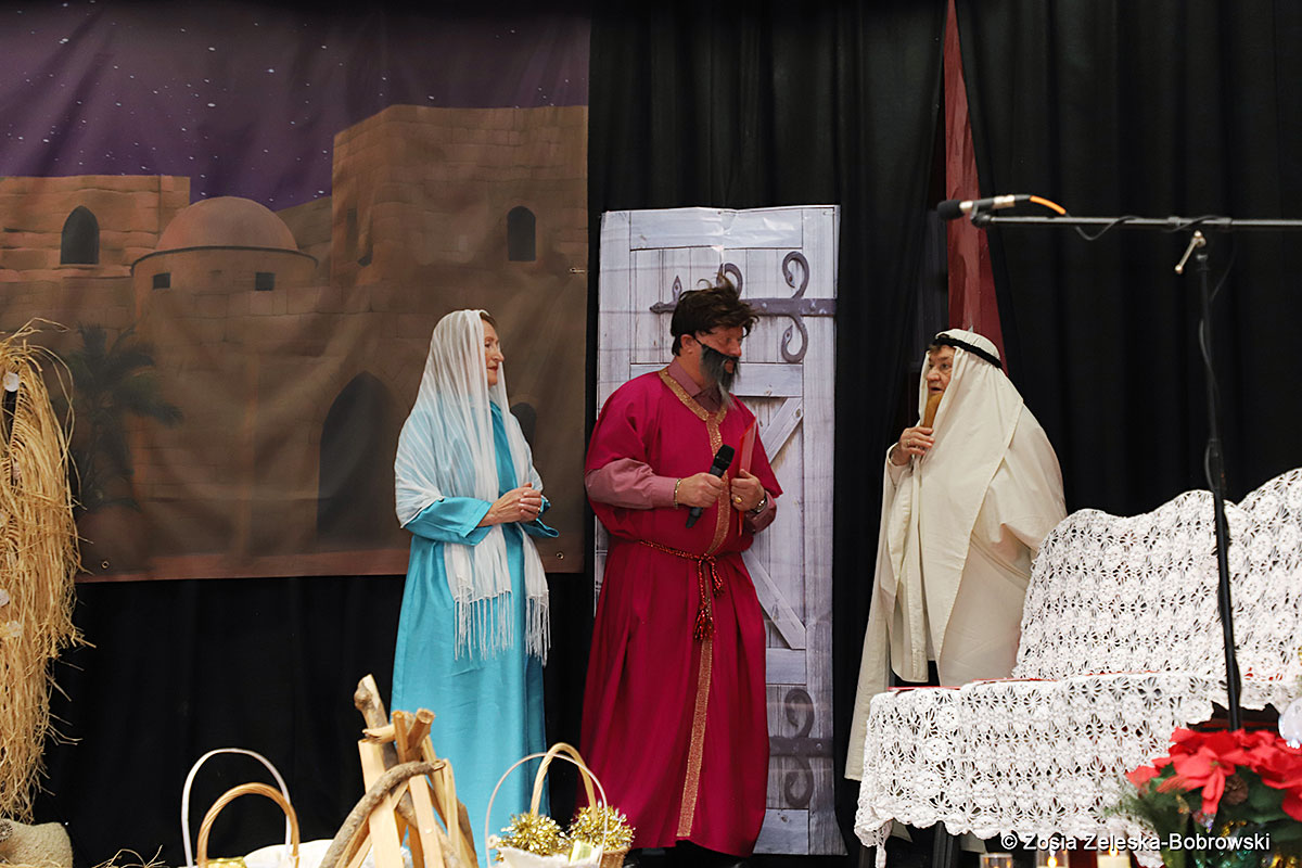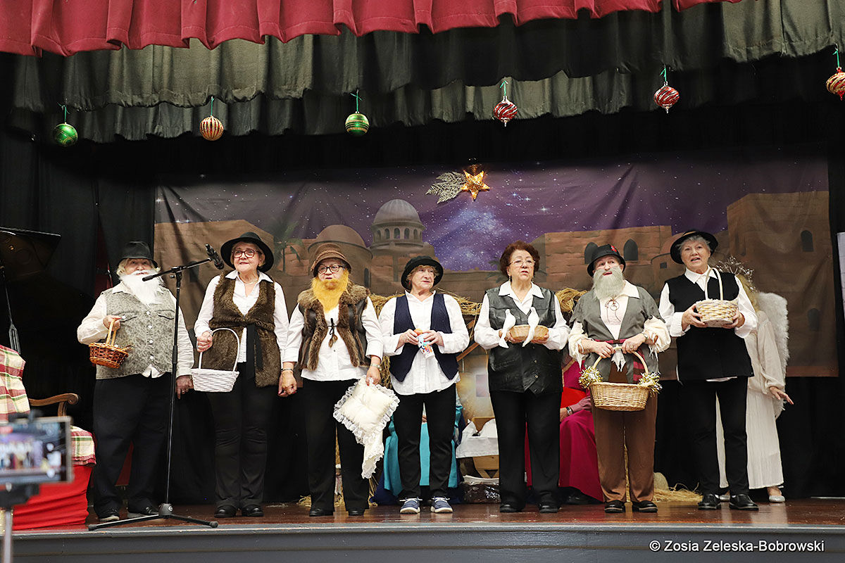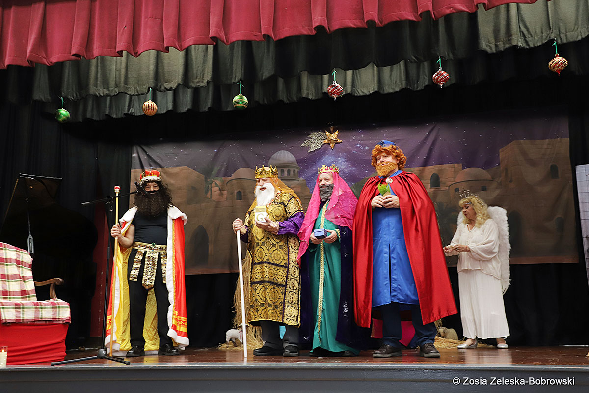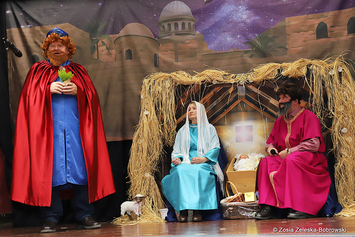 Everything happened in a musical setting and with the accompaniment of Ola Watras as well as with the singing of the audience, who tensely experienced the fate of the Holy Family and took an active part in the entire performance. Of course, traditionally, the “Nativity play” performed by the “Krakus” choir ended with a procession of carol singers among the audience, with a beautiful rotating Bethlehem Star made by Berta and Krzysztof Zieliński. Thanks are also due to Mrs. Stanisława Krzyś, and Krystyna Krudysz for preparing the costumes and props, to Mr. Waldemar Ostrowski, Krzysztof Zieliński and Tadeusz Nowak for preparing the decorations on the stage. Artur Pustula supervised the sound.