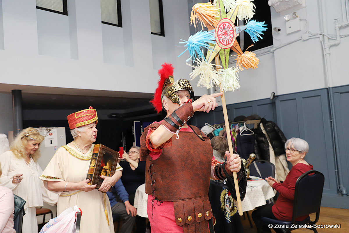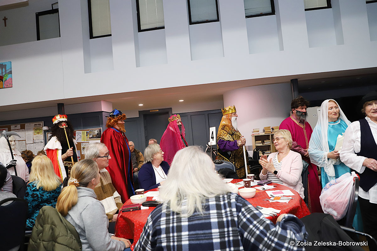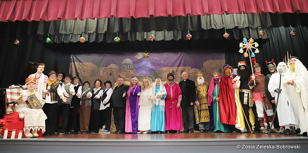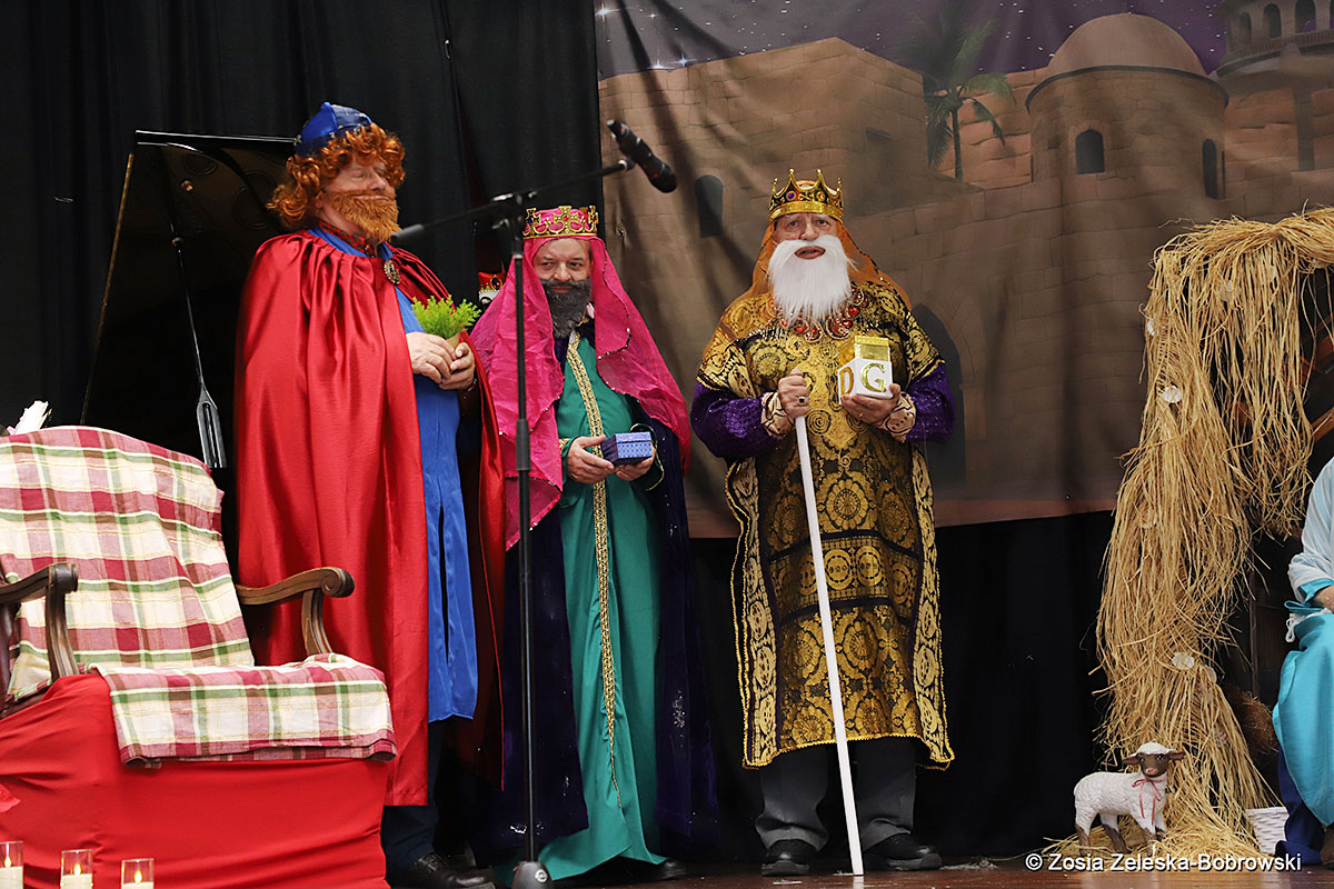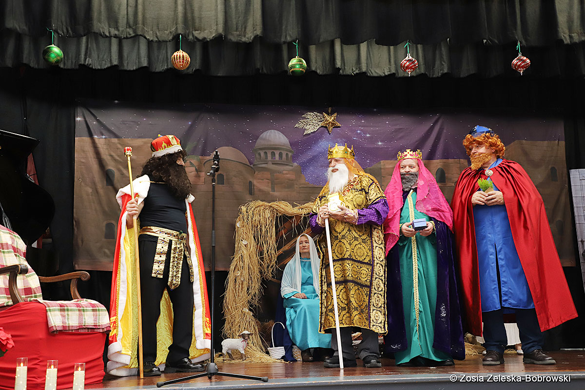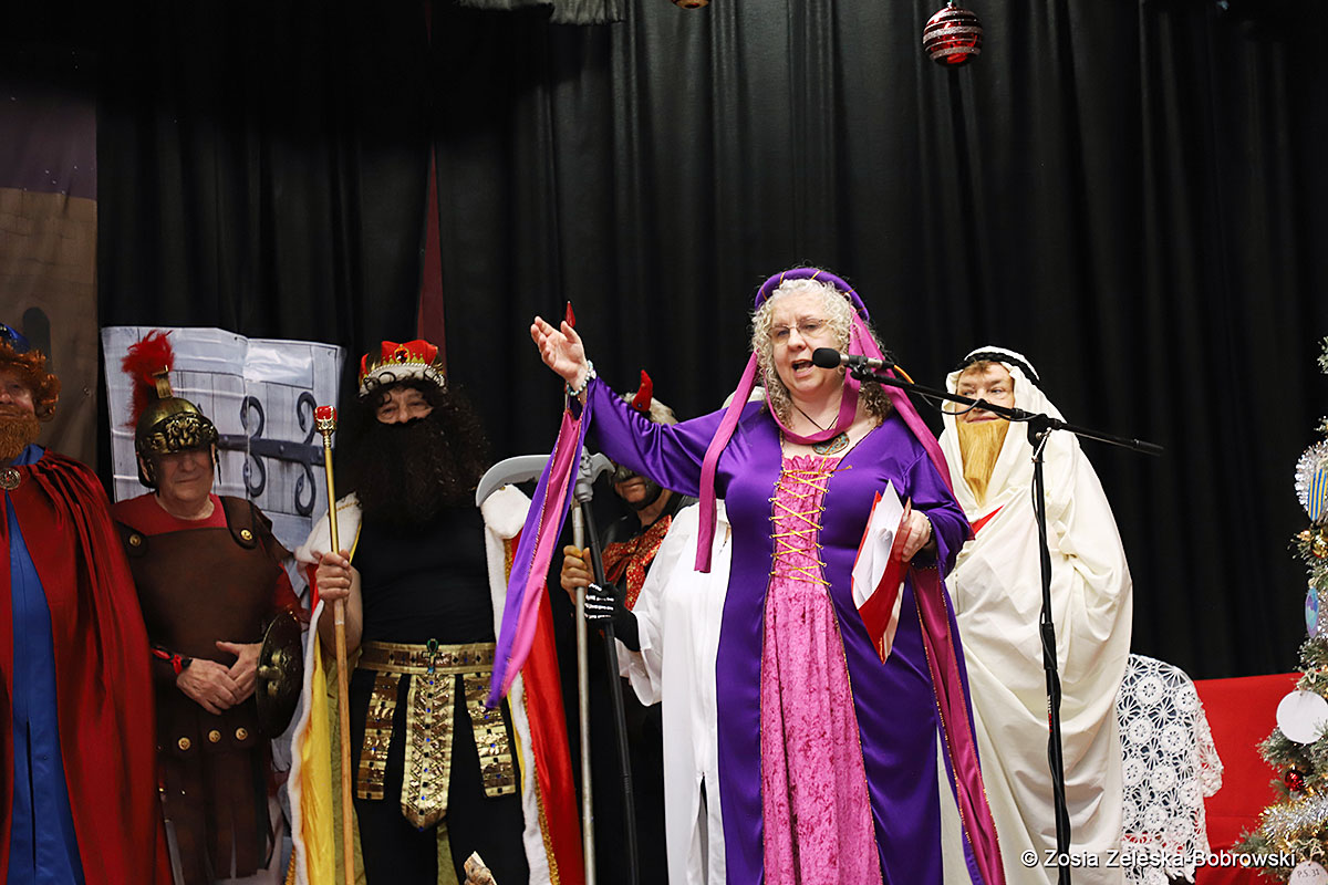 Everything happened in a musical setting and with the accompaniment of Ola Watras as well as with the singing of the audience, who tensely experienced the fate of the Holy Family and took an active part in the entire performance. Of course, traditionally, the “Nativity play” performed by the “Krakus” choir ended with a procession of carol singers among the audience, with a beautiful rotating Bethlehem Star made by Berta and Krzysztof Zieliński. Thanks are also due to Mrs. Stanisława Krzyś, and Krystyna Krudysz for preparing the costumes and props, to Mr. Waldemar Ostrowski, Krzysztof Zieliński and Tadeusz Nowak for preparing the decorations on the stage. Artur Pustula supervised the sound.