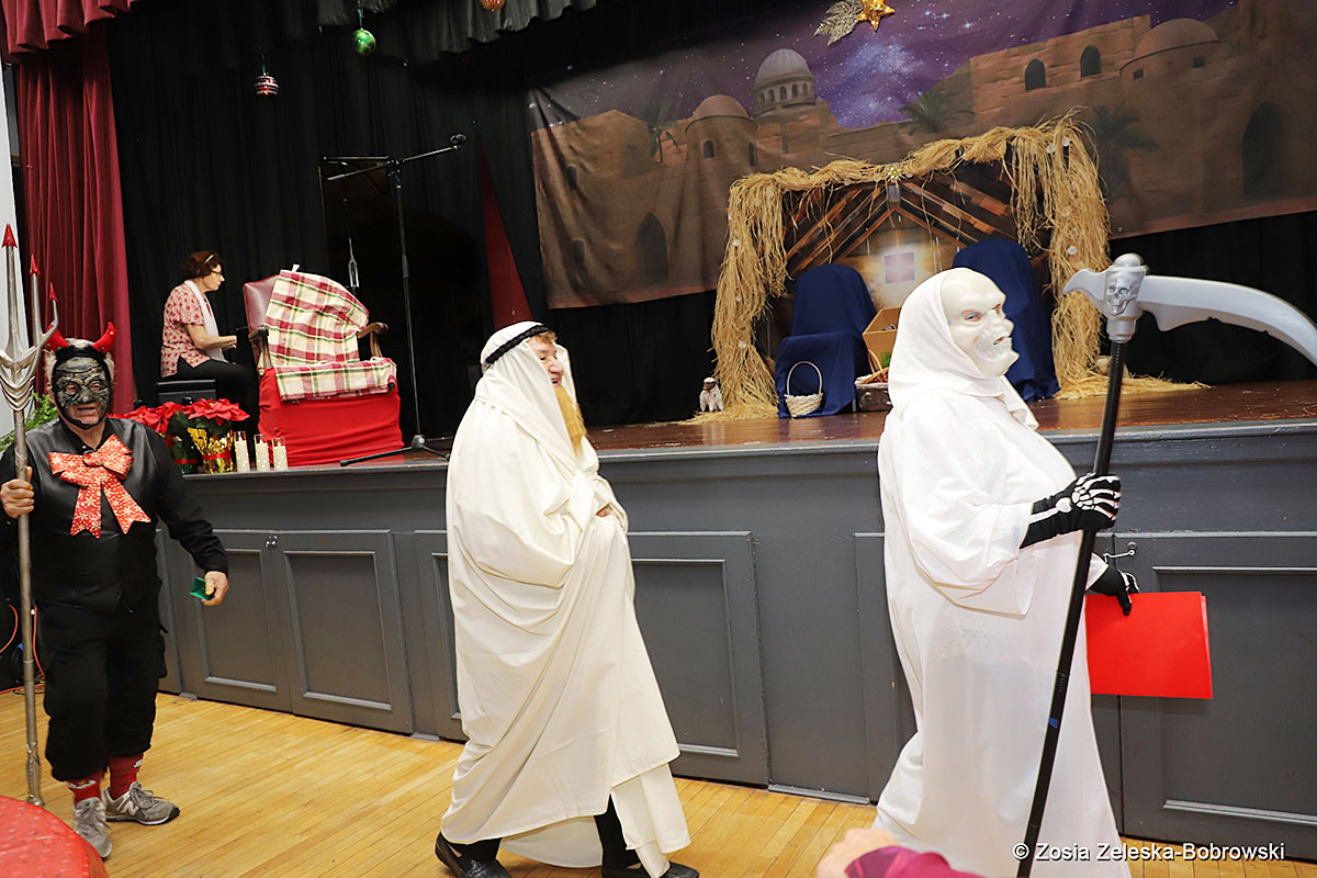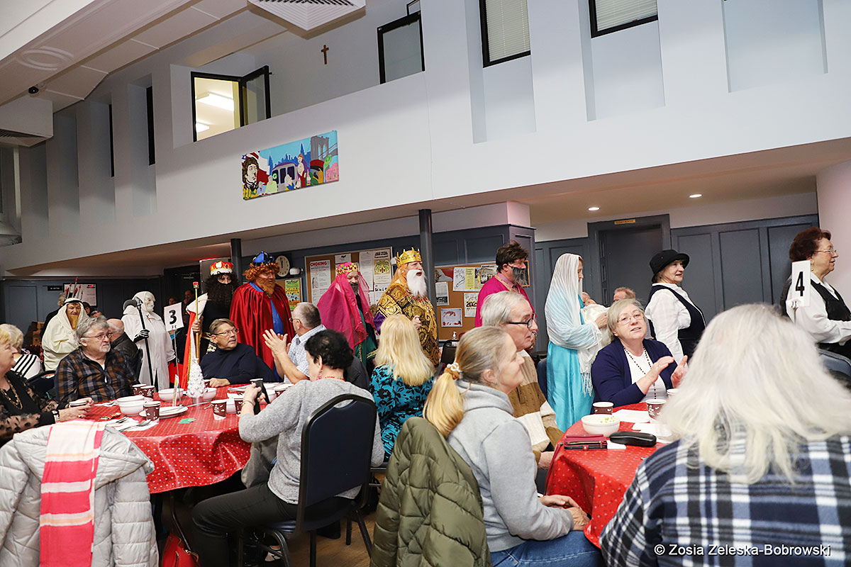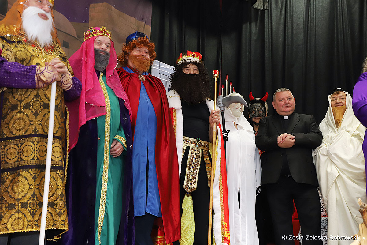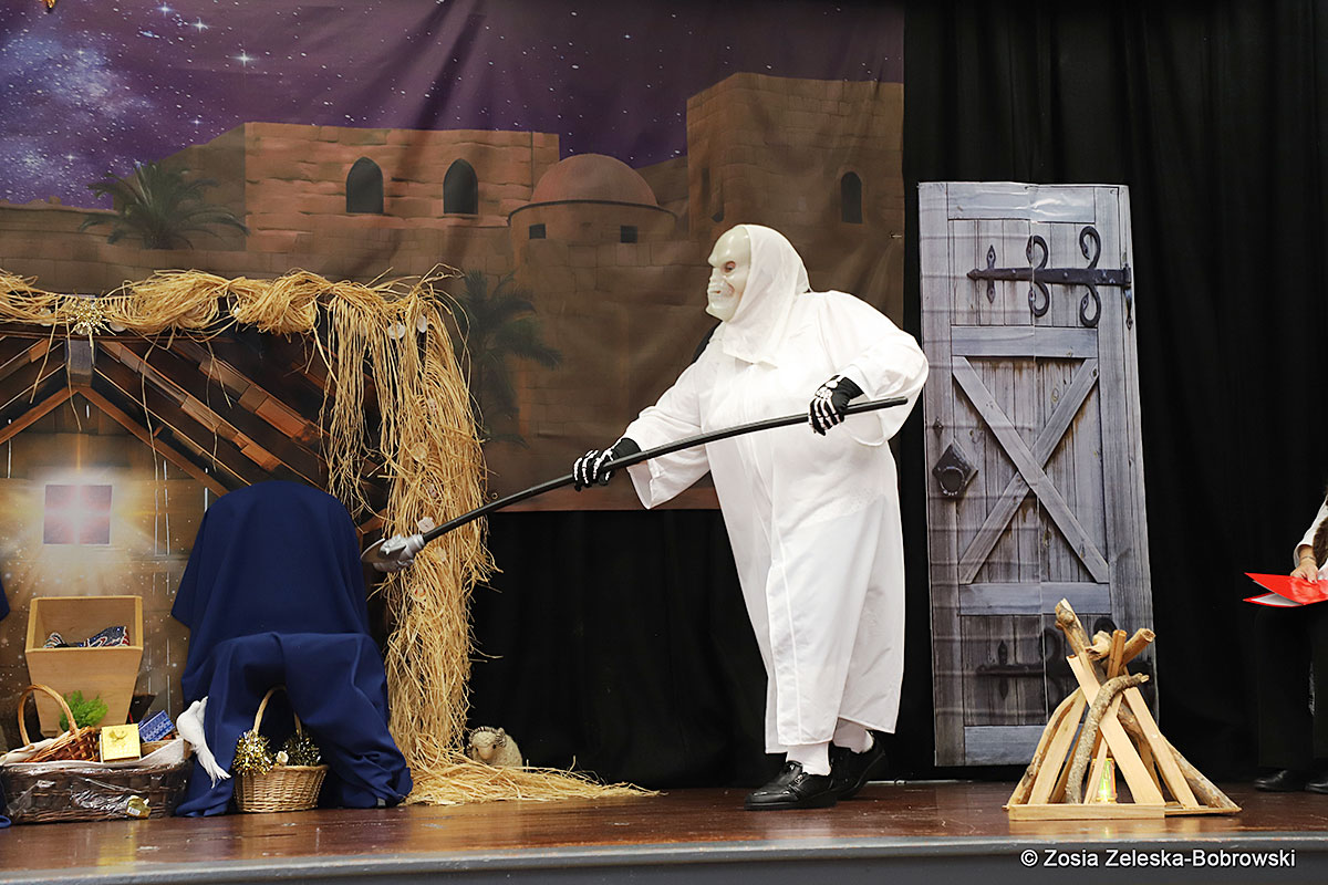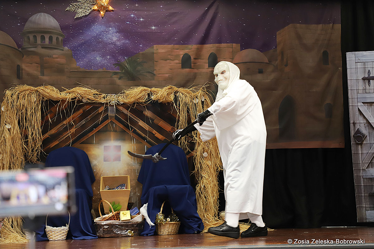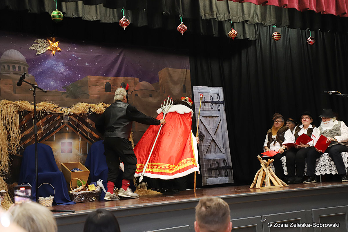 Everything happened in a musical setting and with the accompaniment of Ola Watras as well as with the singing of the audience, who tensely experienced the fate of the Holy Family and took an active part in the entire performance. Of course, traditionally, the “Nativity play” performed by the “Krakus” choir ended with a procession of carol singers among the audience, with a beautiful rotating Bethlehem Star made by Berta and Krzysztof Zieliński. Thanks are also due to Mrs. Stanisława Krzyś, and Krystyna Krudysz for preparing the costumes and props, to Mr. Waldemar Ostrowski, Krzysztof Zieliński and Tadeusz Nowak for preparing the decorations on the stage. Artur Pustula supervised the sound.