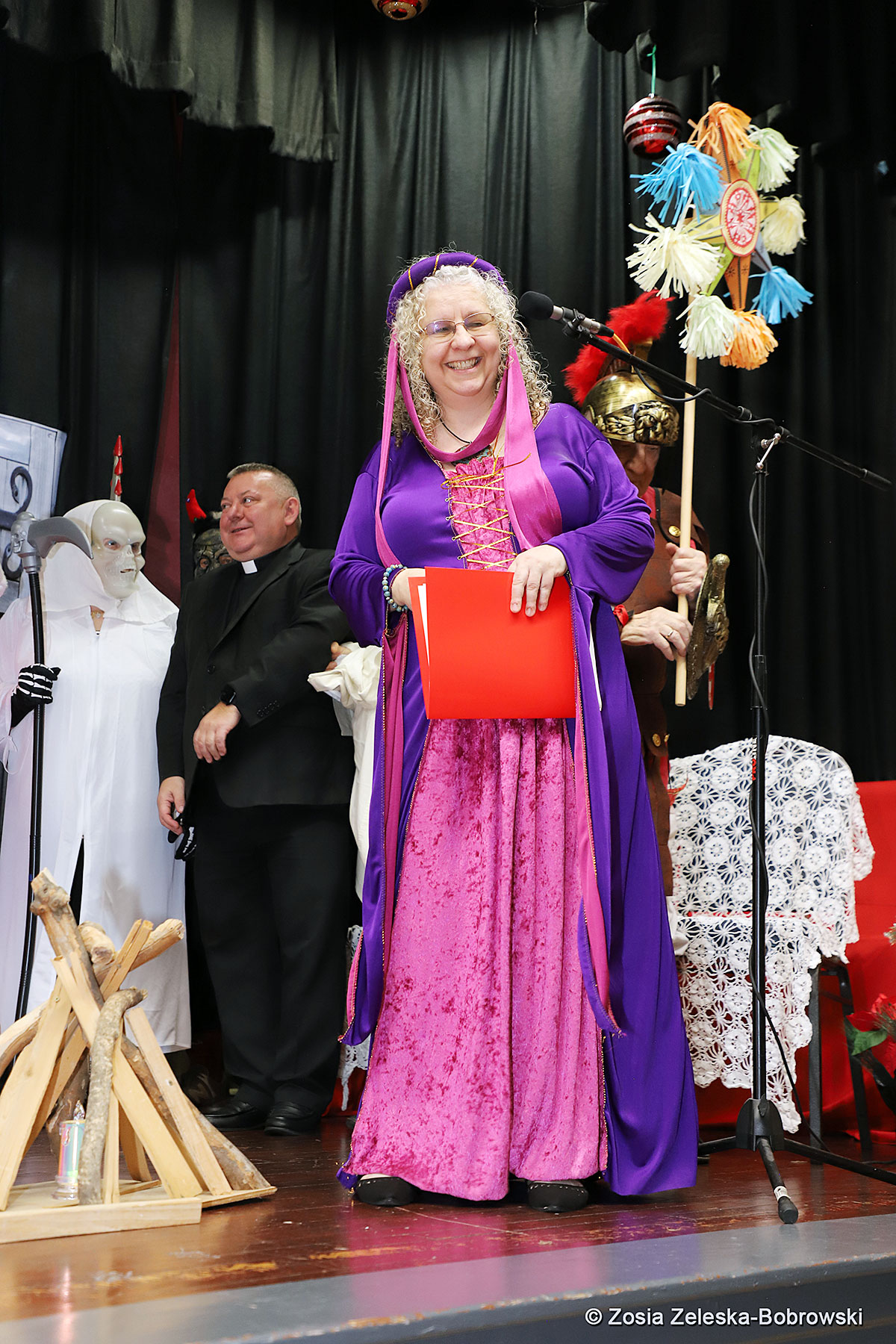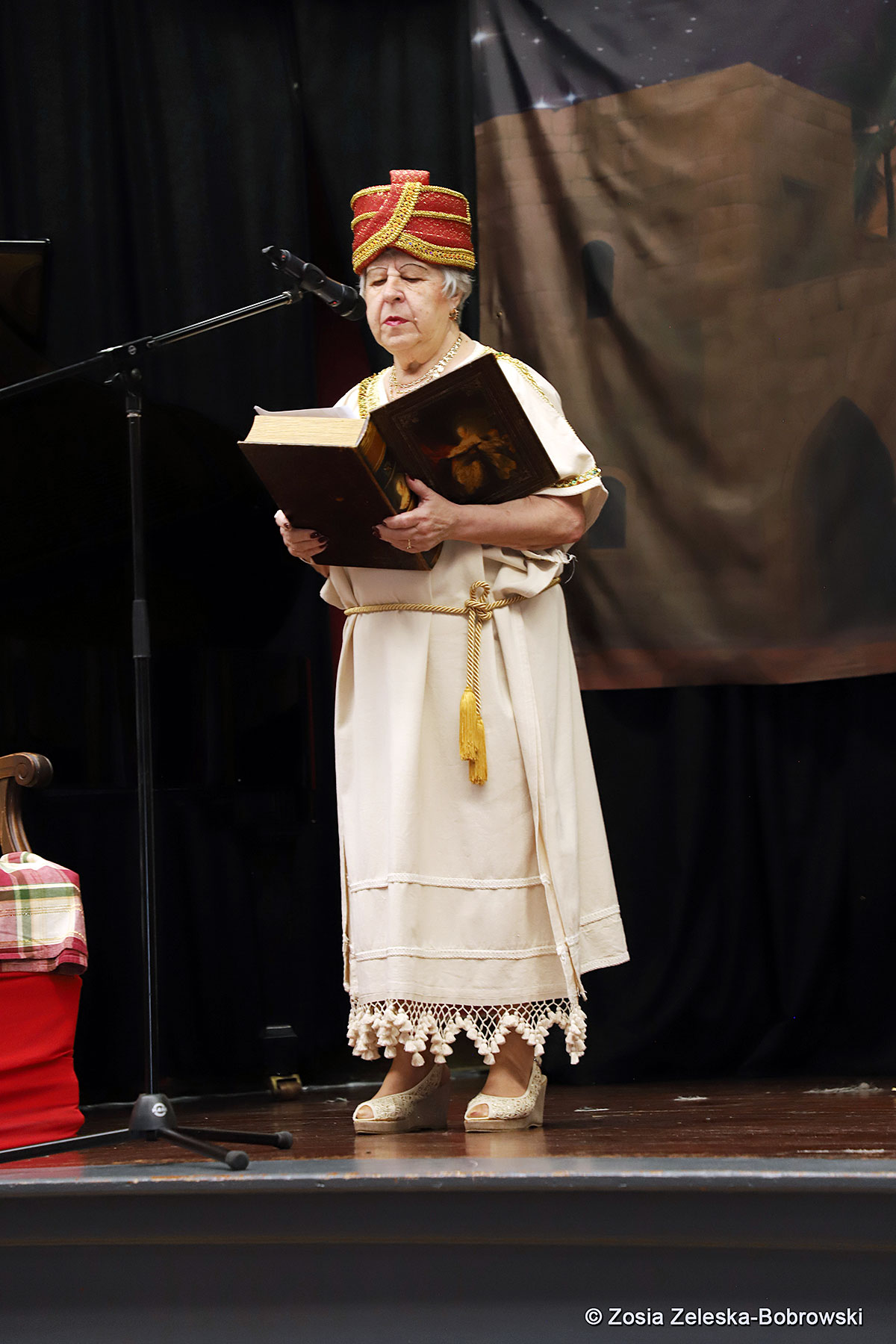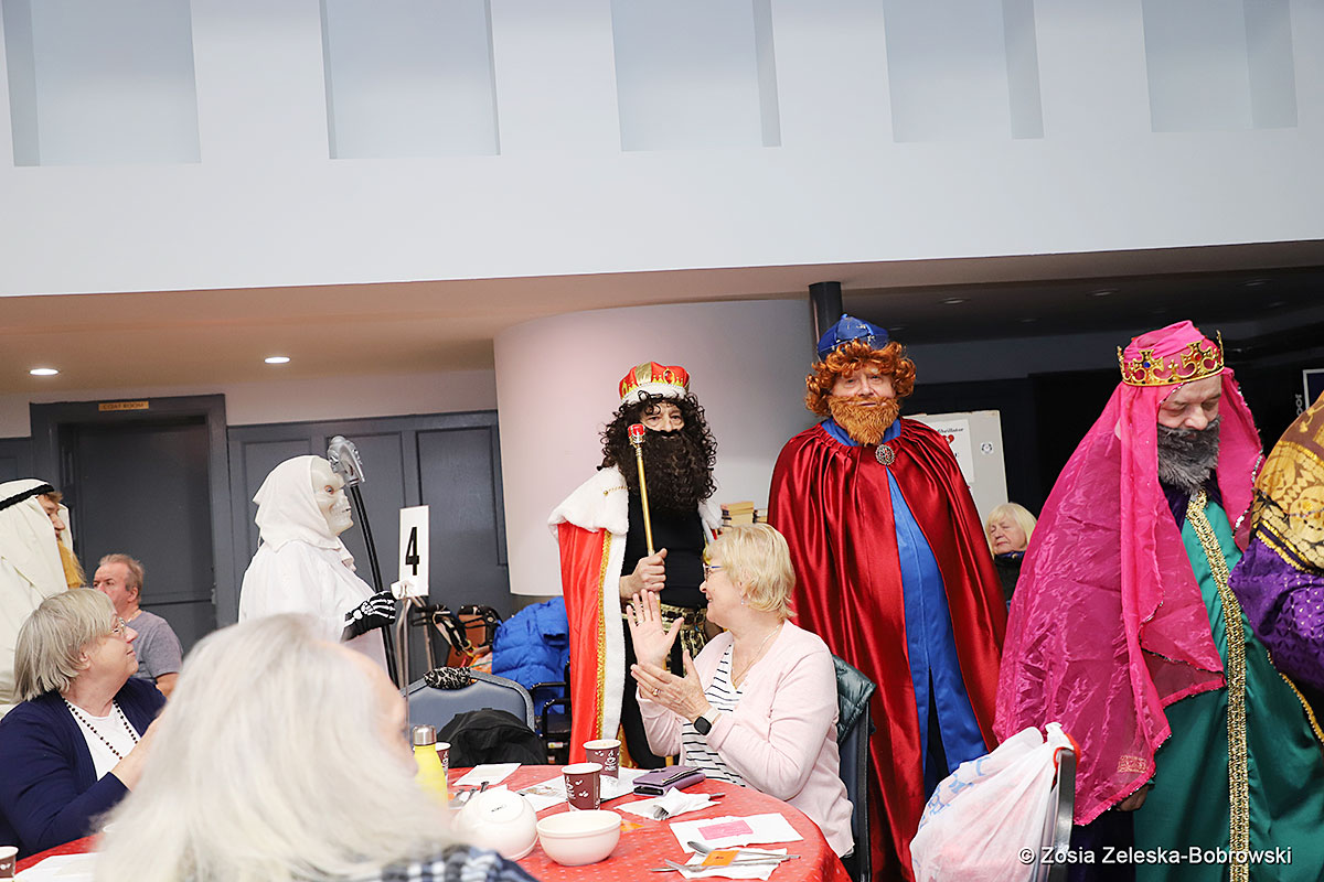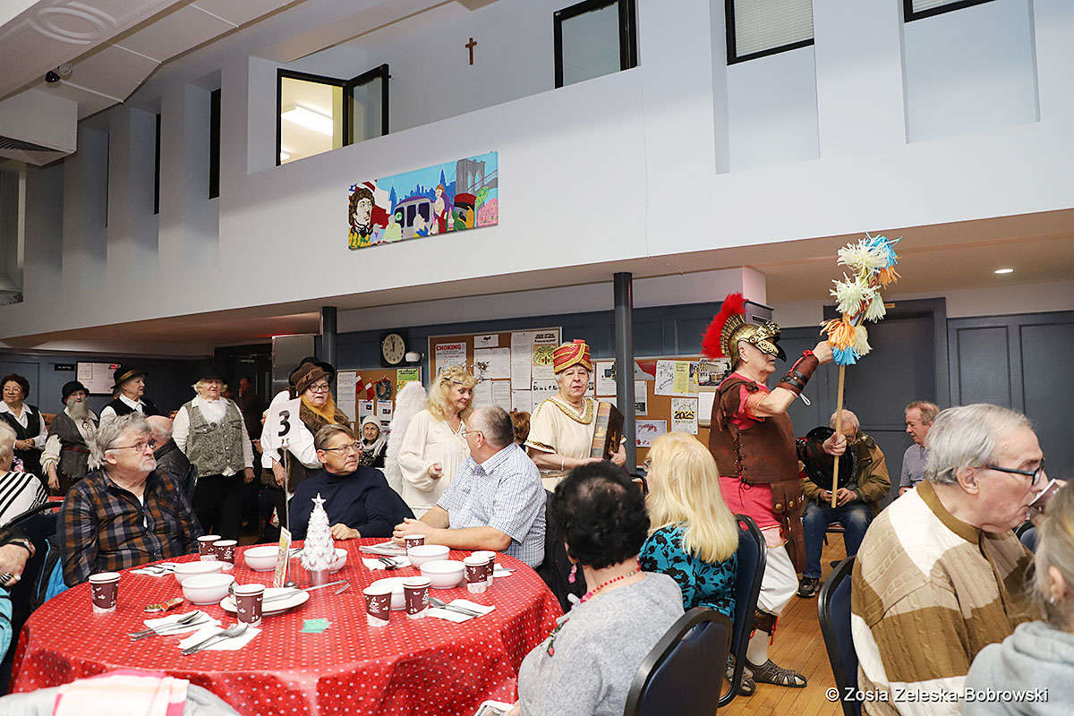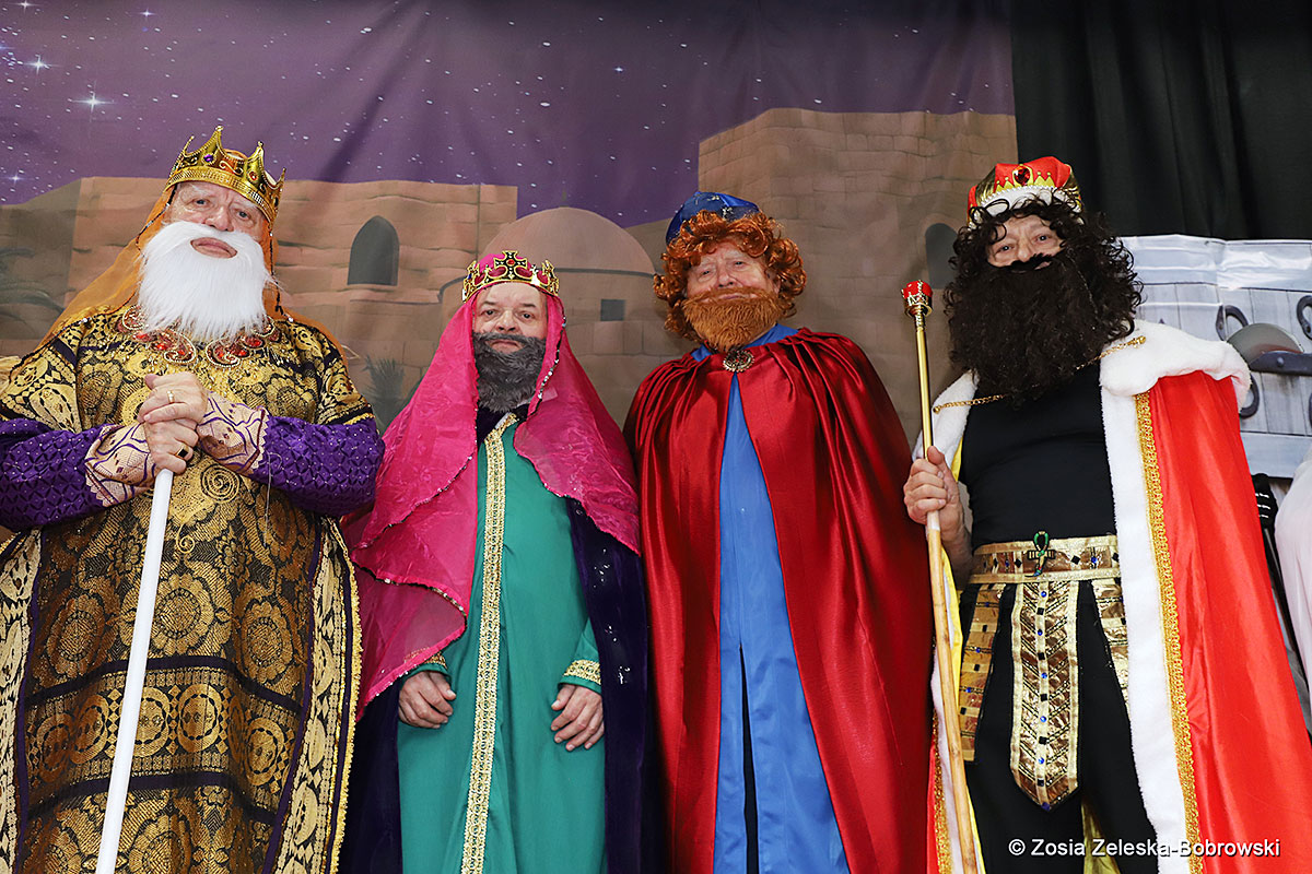 Everything happened in a musical setting and with the accompaniment of Ola Watras as well as with the singing of the audience, who tensely experienced the fate of the Holy Family and took an active part in the entire performance. Of course, traditionally, the “Nativity play” performed by the “Krakus” choir ended with a procession of carol singers among the audience, with a beautiful rotating Bethlehem Star made by Berta and Krzysztof Zieliński. Thanks are also due to Mrs. Stanisława Krzyś, and Krystyna Krudysz for preparing the costumes and props, to Mr. Waldemar Ostrowski, Krzysztof Zieliński and Tadeusz Nowak for preparing the decorations on the stage. Artur Pustula supervised the sound.