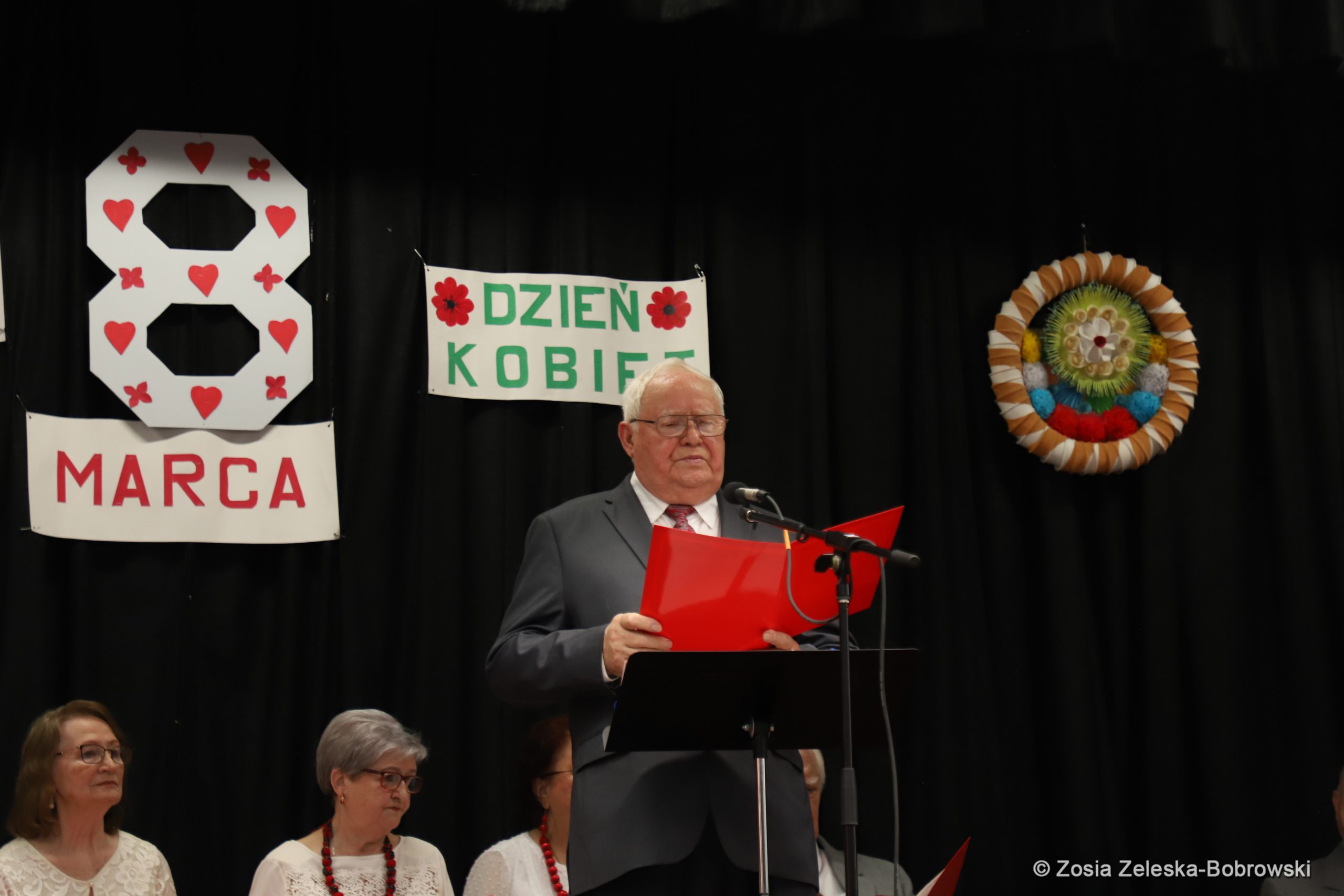 The Krakus Choir, conducted by Katarzyna Drucker, sang several songs, all dedicated to women: “A song for Women’s Day”, words by Anna Kucay, “For the health of ladies”, “Woman, Woman”, “Is it a single woman or a married woman”, “A girl from Krakus “, “Don’t hit a woman even with a flower.” Poems for the ladies were recited by the following gentlemen: Stanisław Kulczycki, Tadeusz Nowak, Stanisław Piekut and Krzysztof Zieliński. Accompanied by Ola Watras. The beautiful decoration of the stage was the work of Zofia Wiszniewska and Waldemar Ostrowski.