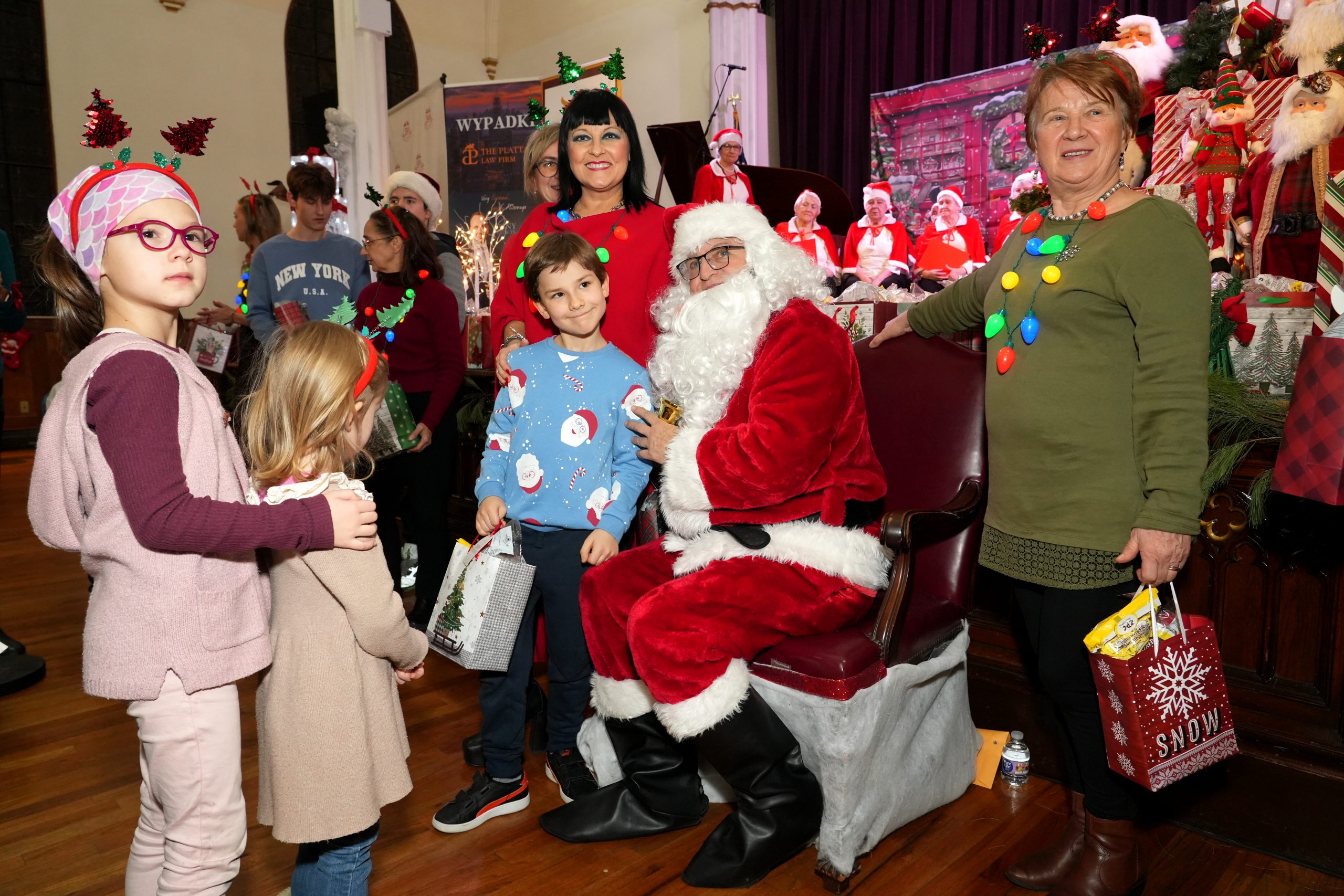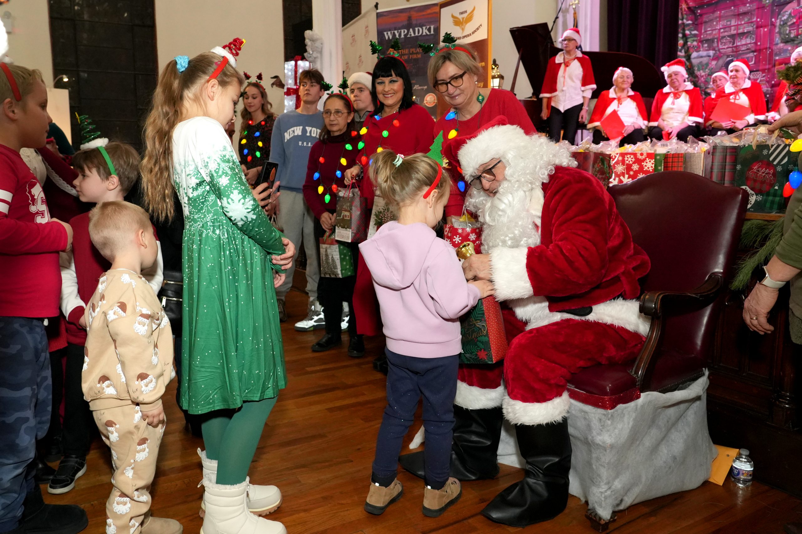 When the lights flashed, Mrs. Kasia safety with the children played the game “Searching for St. Nicholas”. After reading a special list with the saint’s signature, through a series of riddles and puzzles and magic spells, the children helped St. Nicholas to get to CPS using a bell. The children were delighted and quickly solved all the tasks, with the help of two elves Robert Zakrzewski and Szymon Wiśniewski. After this educational and interesting pre-performance game, with the illuminated situation of Santa Claus’s performance (Stefan Rysak), the children were very happy, received their gifts and the undertaking with Danuta Bronchard – the director of the Maria Konopnicka Polish Supplementary School danced to the rhythm of joyful music. Photo session with Santa Claus, a festive evening at the Polish-Slavic Center. Script, costumes and direction by Kasia Drucker.