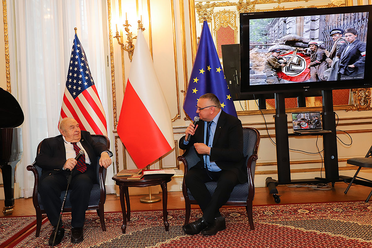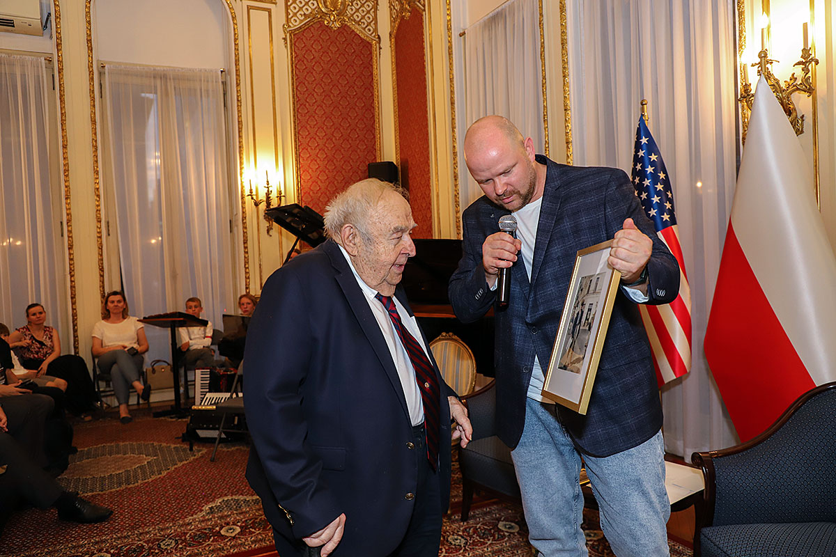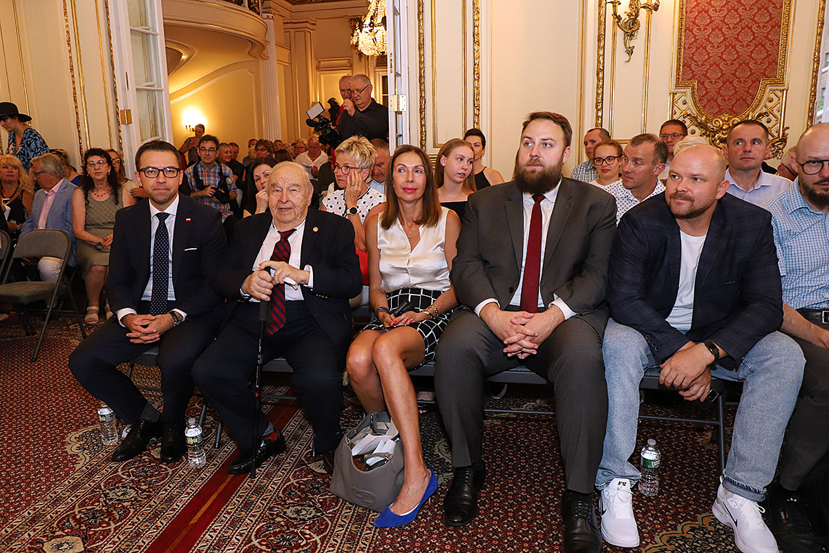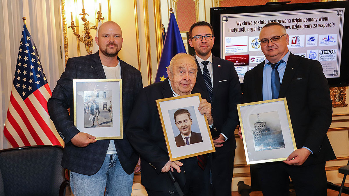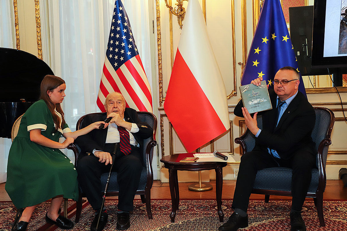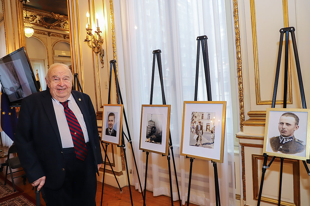 The guests of honor at the ceremony were: Andrzej Rawicz, a Warsaw Uprising participant, and the aforementioned colorist, Mikołaj Kaczmarek, who flew in from Poland especially for the occasion. After the Polish national anthem was sung by Hanna Pogorzelska, this year’s Miss Polonia from Ridgewood, Wojciech Maślanka conducted a conversation with 90-year-old Andrzej Rawicz from Pennsylvania. He talked about his happy childhood before the war, and recalled how, risking his life as a ten-year-old, he distributed a bulletin in Warsaw. He also talked about his family, his mother Krystyna Rawicz-Szabuniewicz, who was active in the Home Army during the war, and his father Józef Rawicz-Szabuniewicz, a Polish and British air force officer, as well as his grandfather Bronisław Ratajczak, who in the first days of the uprising, after conquering the then skyscraper – Prudential, hung a white and red flag on its top. Unfortunately, he died after their tenement house was bombed on September 5, 1944. He also recalled escaping from the train that, together with his grandmother, cousin, aunt, and other insurgents and residents of Warsaw, was sent to the KL Auschwitz concentration camp.