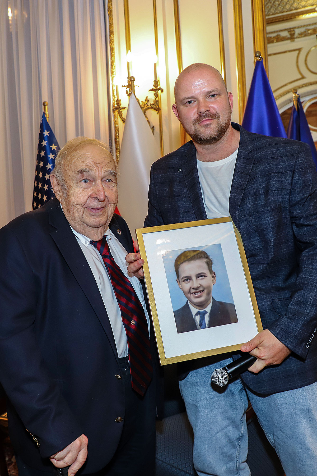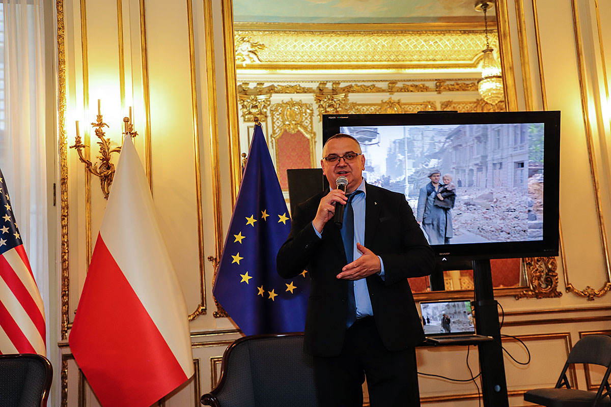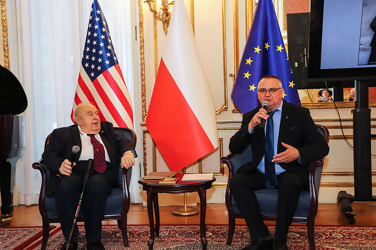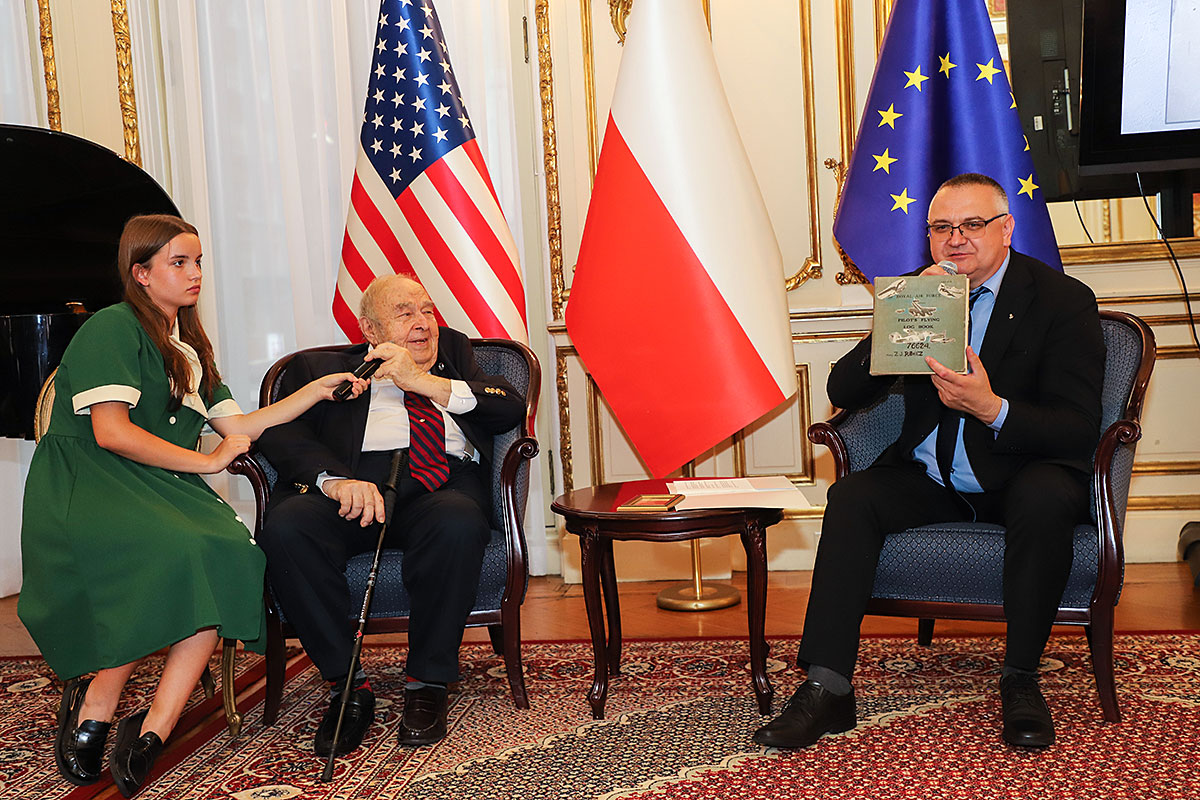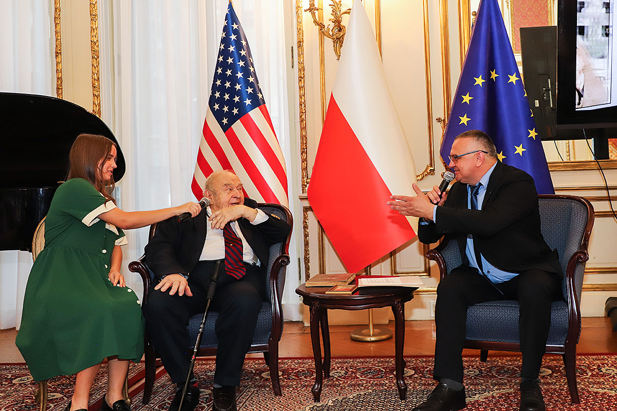 The guests of honor at the ceremony were: Andrzej Rawicz, a Warsaw Uprising participant, and the aforementioned colorist, Mikołaj Kaczmarek, who flew in from Poland especially for the occasion. After the Polish national anthem was sung by Hanna Pogorzelska, this year’s Miss Polonia from Ridgewood, Wojciech Maślanka conducted a conversation with 90-year-old Andrzej Rawicz from Pennsylvania. He talked about his happy childhood before the war, and recalled how, risking his life as a ten-year-old, he distributed a bulletin in Warsaw. He also talked about his family, his mother Krystyna Rawicz-Szabuniewicz, who was active in the Home Army during the war, and his father Józef Rawicz-Szabuniewicz, a Polish and British air force officer, as well as his grandfather Bronisław Ratajczak, who in the first days of the uprising, after conquering the then skyscraper – Prudential, hung a white and red flag on its top. Unfortunately, he died after their tenement house was bombed on September 5, 1944. He also recalled escaping from the train that, together with his grandmother, cousin, aunt, and other insurgents and residents of Warsaw, was sent to the KL Auschwitz concentration camp.