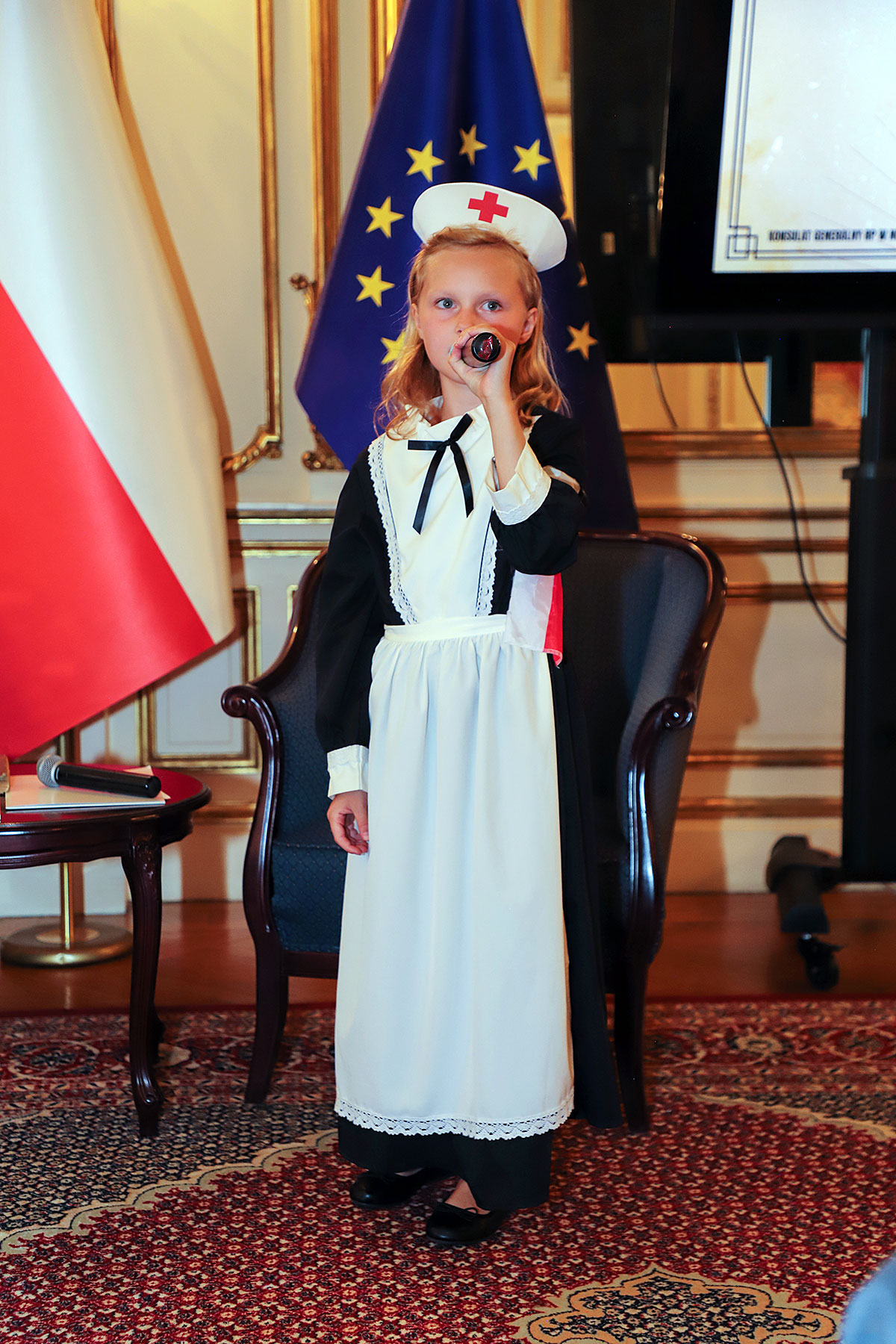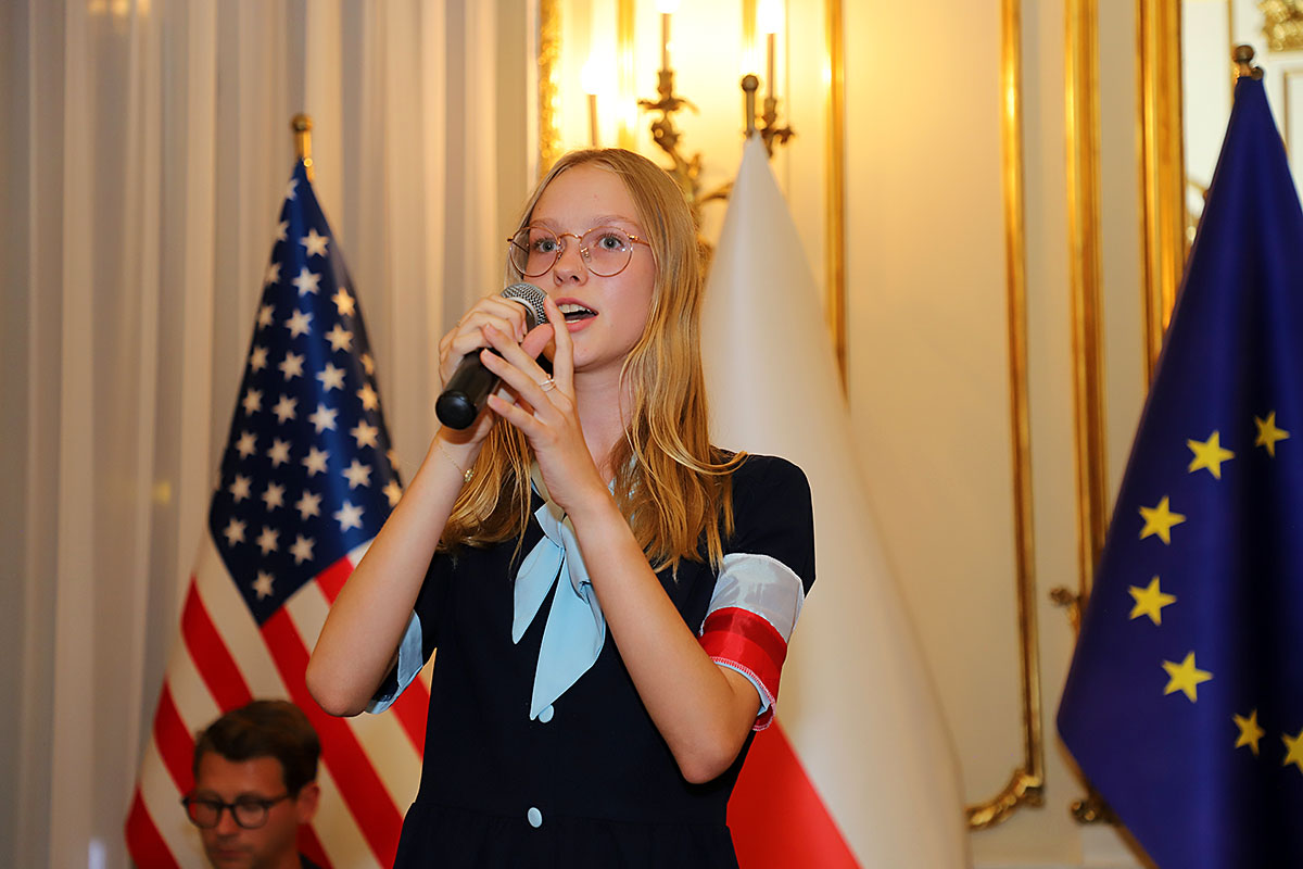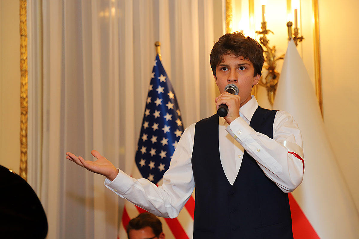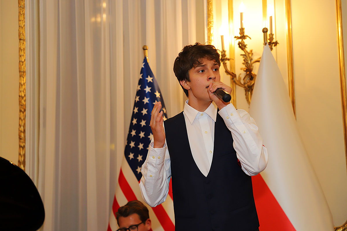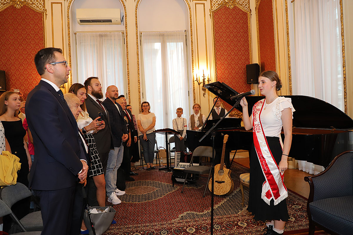 The artistic part featured the Polonia Children’s Choir, founded in 2020, led by Dominik Grzyb, who played the piano, guitar and accordion. The children, dressed in costumes from the 1940s, movedly sang insurgent songs. Michał Jamrożek, who has already won many music competitions and awards, sang “Lullaby from the Ghetto” in a wonderful falsetto. Children from the Polonia orchestra played the accordion, clarinet and xylophone.