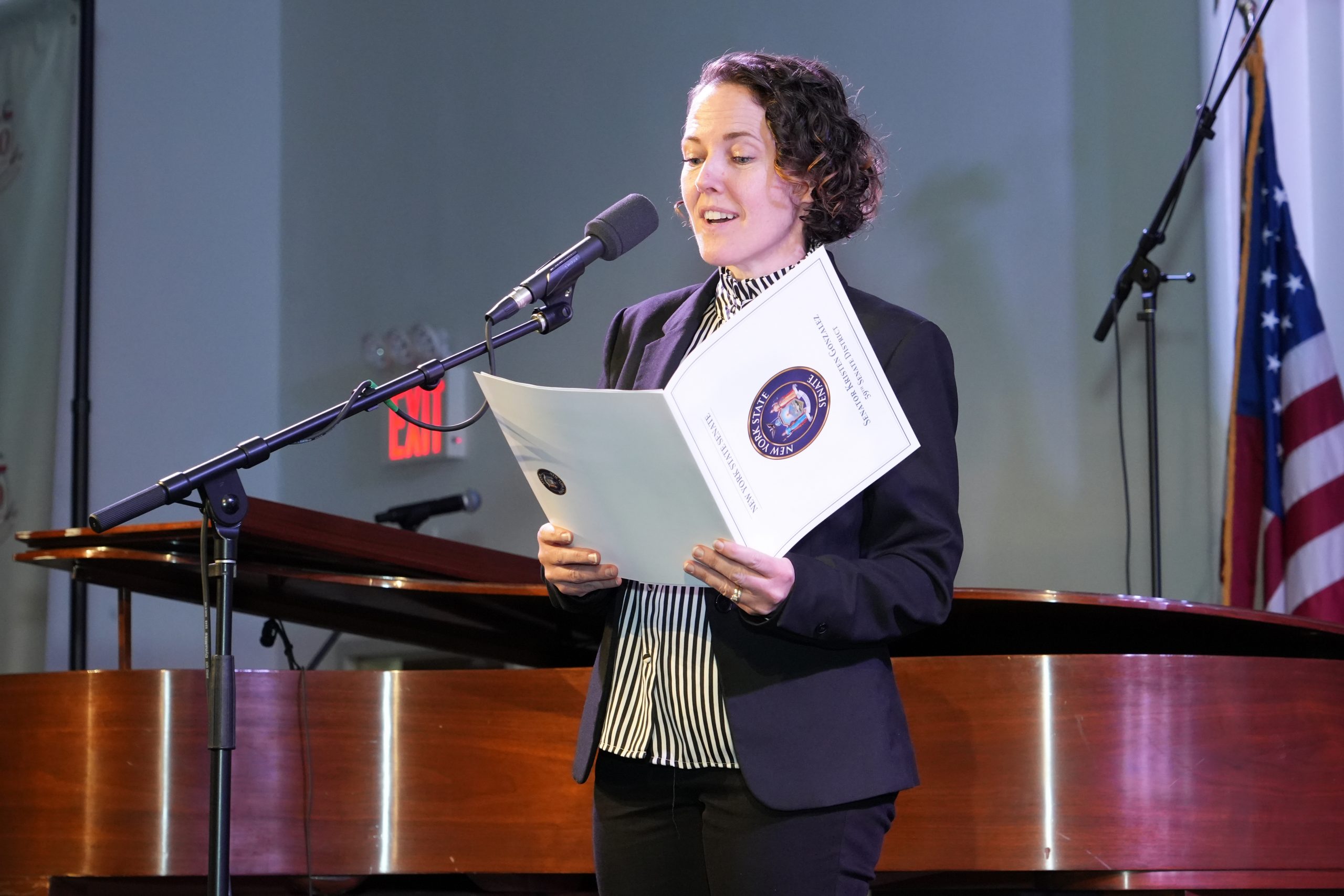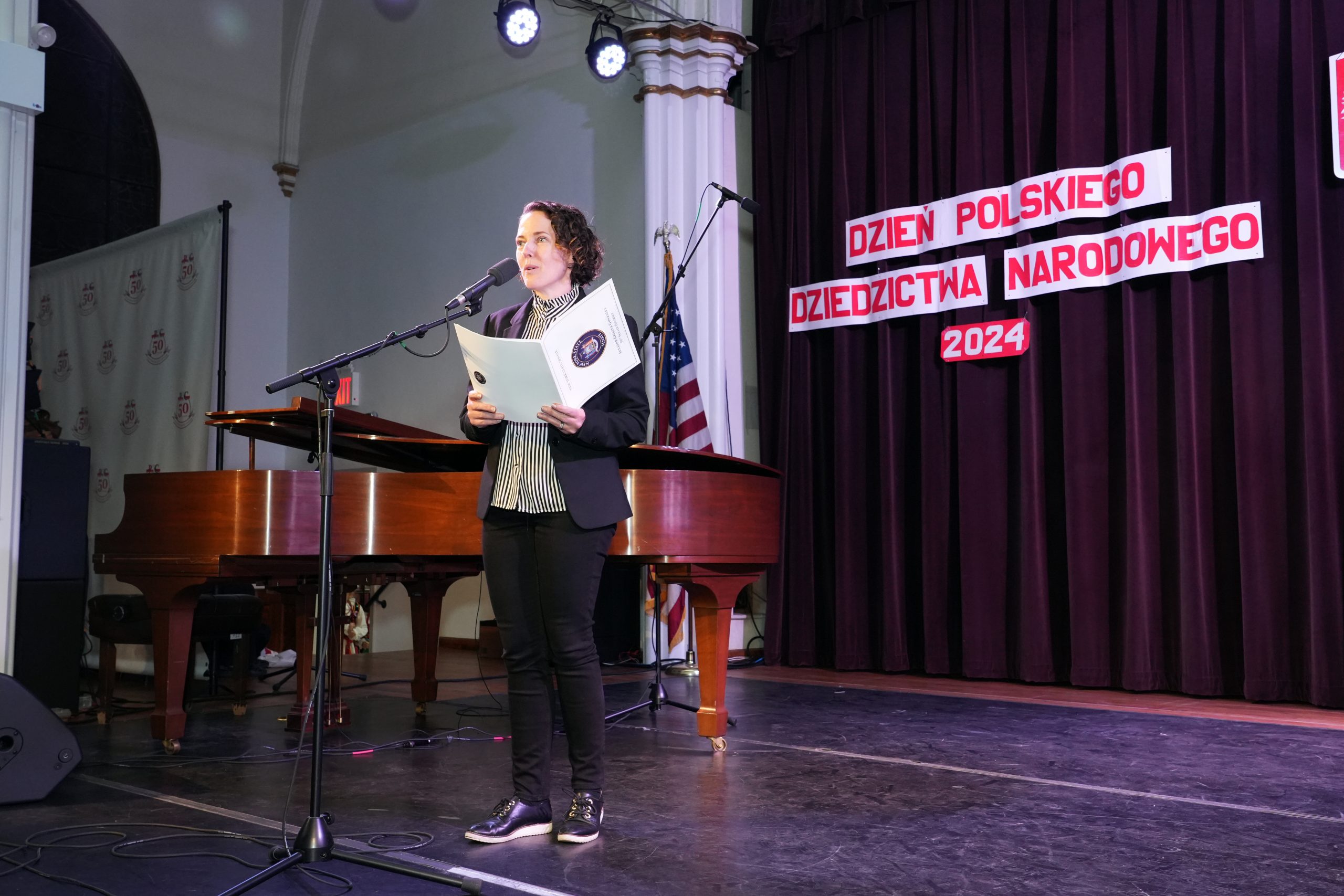 Representatives of Polish organizations, supporters and members of the Polish and Slavic Center led by the Board of Directors, representatives of Polish authorities: Consul Justyna Gollob-Park and Monika Kucharczyk, and the American authorities represented by District 33 Councilman Lincoln Restler, Assembly Member Emily Gallagher and Shawna Morlock, Director of Community Relations in the office of State Senator Kristen Gonzalez, gathered on Thursday, October 24th in the PSC auditorium on Kent Street for the annual celebration of Polish Heritage Day in Brooklyn, which was held under the honorary patronage of the Consulate General of the Republic of Poland in New York and Consul General Mateusz Sakowicz. For years, the celebration of Polish Heritage Day in Brooklyn has been organized at the headquarters of the Brooklyn Borough President, but for the past two years, with no less enthusiasm, they have been held in the renovated auditorium of the Polish and Slavic Center on Kent Street. The Center, which is the largest cultural and social organization of the Polish community in New York, has been proudly leading the organization of the celebration of this holiday for years. The purpose of this ceremony, which is part of the nationwide celebration of Polish Heritage Month in October, is to highlight the contribution of immigrants from Poland and Americans of Polish origin to the cultural, social and economic development of Brooklyn, New York City, and the New York region.