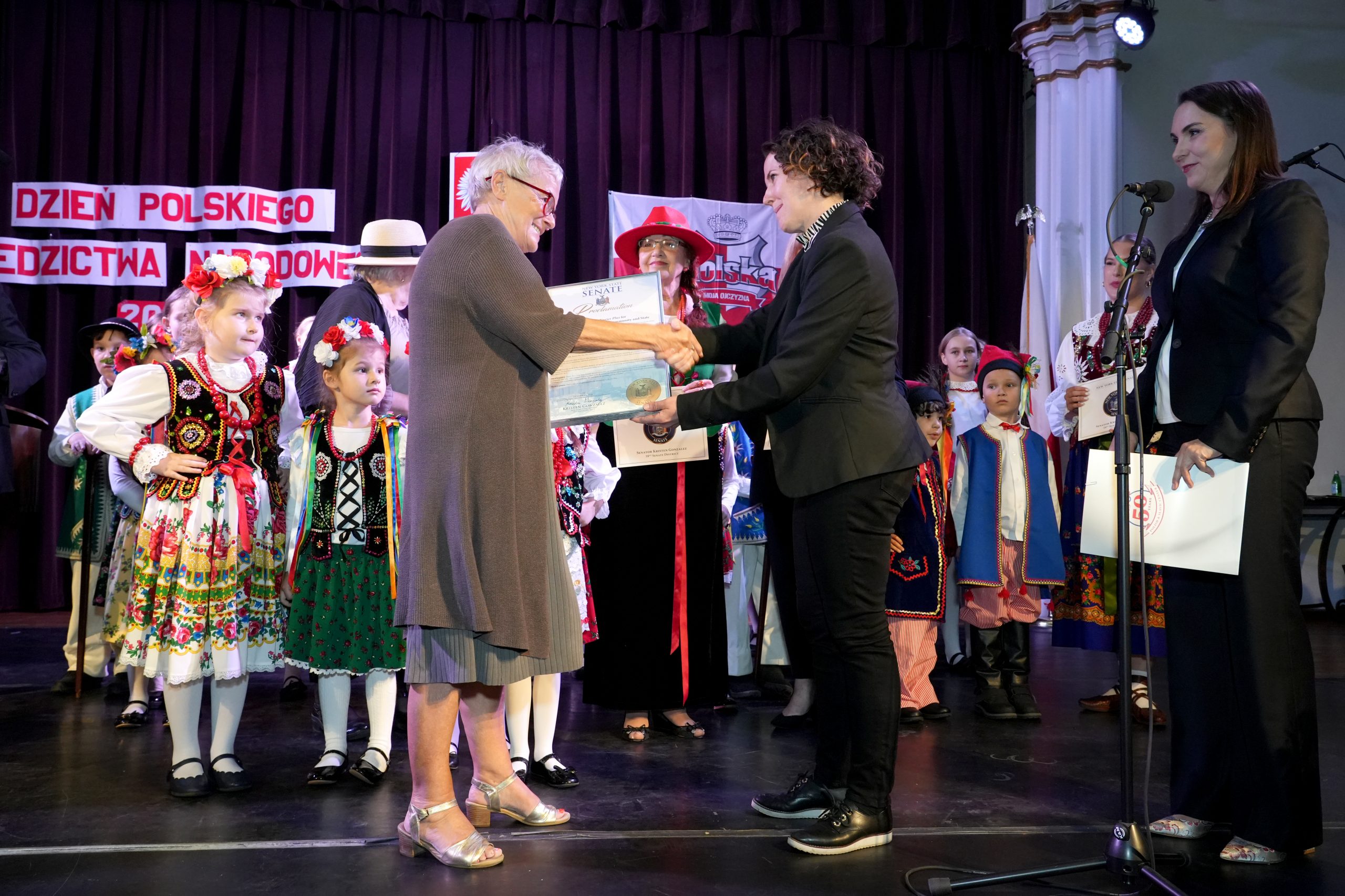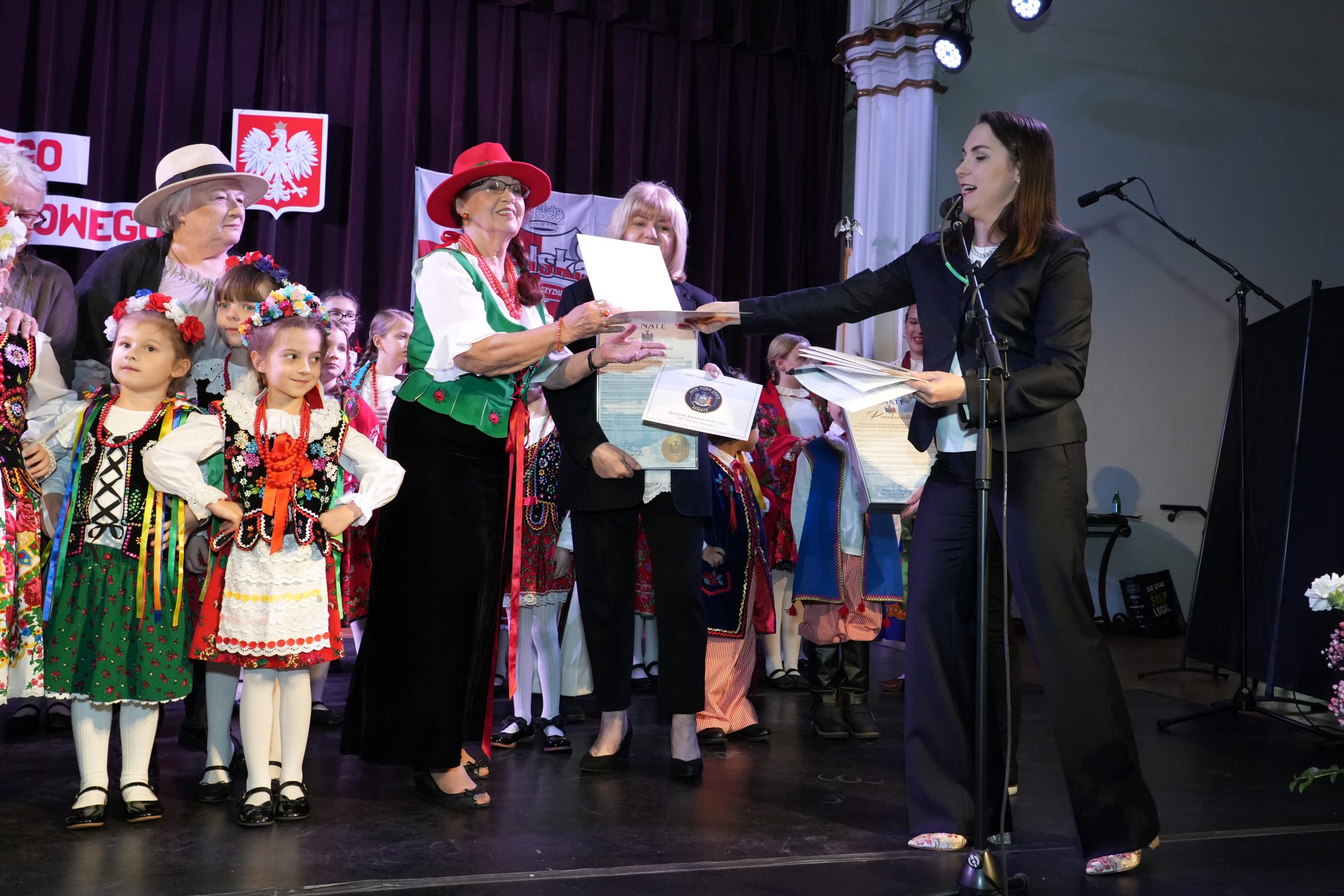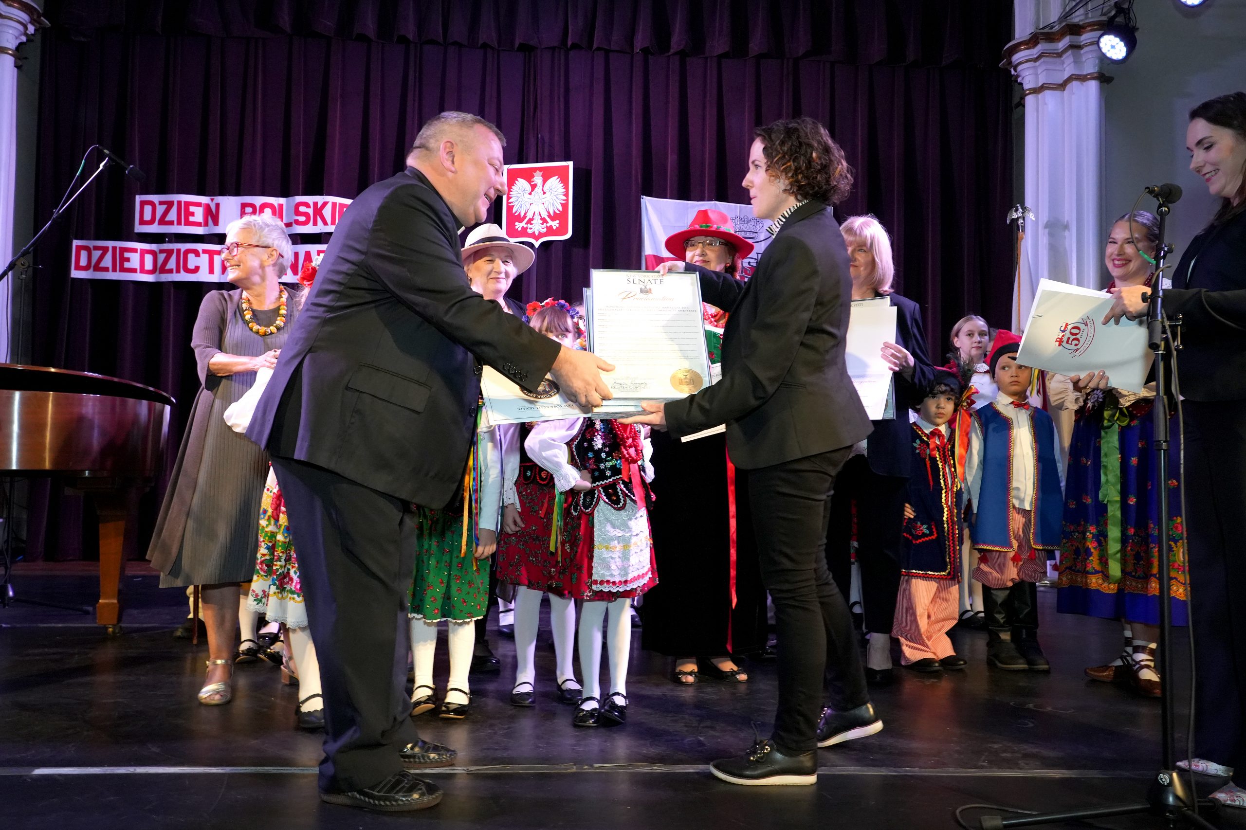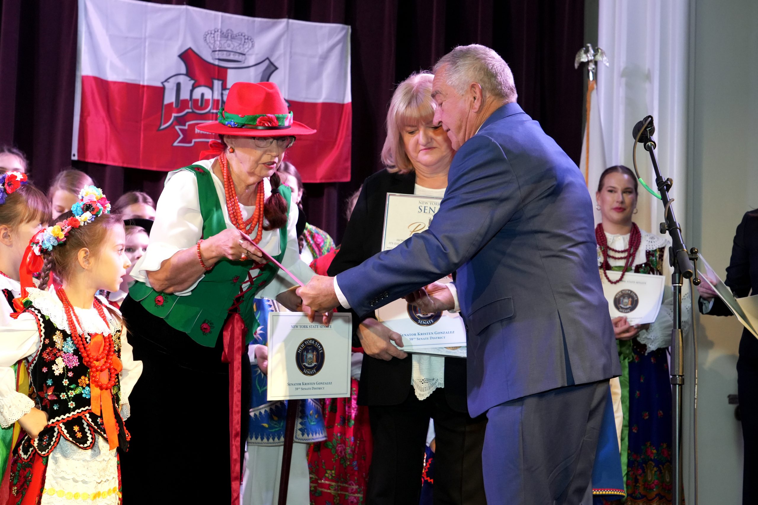 In addition to the proclamation and certificates of appreciation from the City Council and State Senator Kristen Gonzalez, the Krakowianki i Górale ensemble received an award from Brooklyn Mayor Antonio Reynoso, which was presented to them on behalf of the borough mayor by Paweł Pachacz, President of the Polish-Slavic Center.