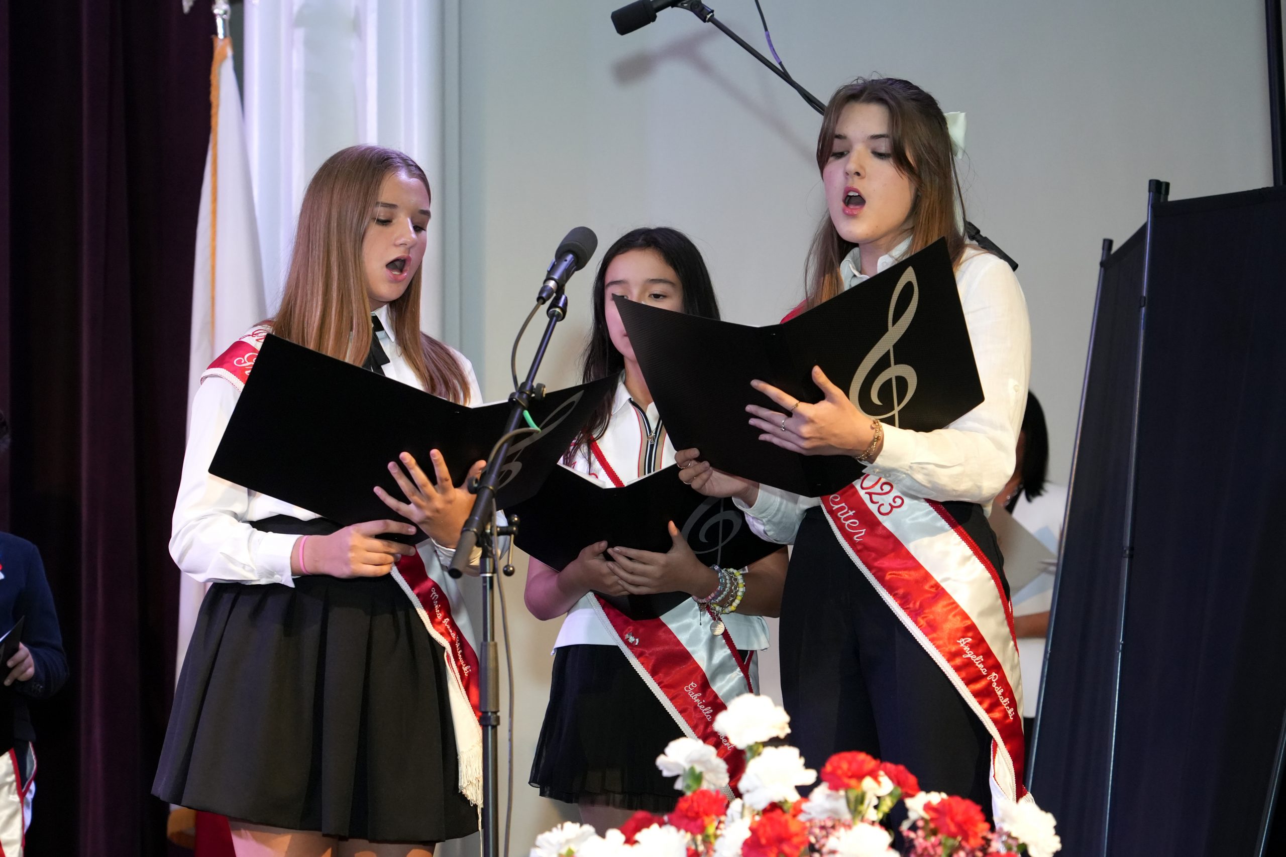 The first choir to perform during the ceremony was the Copernicus Children Choir, conducted by Bożena Konkiel, who is also a member of the board of directors of the Polish and Slavic Center. The choir, made up of children from Polish and American families, performed the songs “Polskie Kwiaty” and “Muzyka dla Kopernika.” The latter was recently released as a music video, which can be viewed on the Polish-Slavic Center website: www.https://polishslaviccenter.us/teledysk-do-utworu-muzyka-dla-kopernika/.